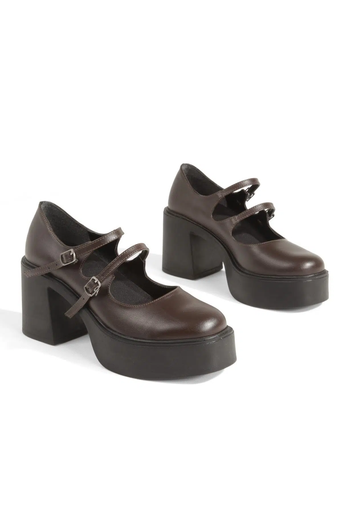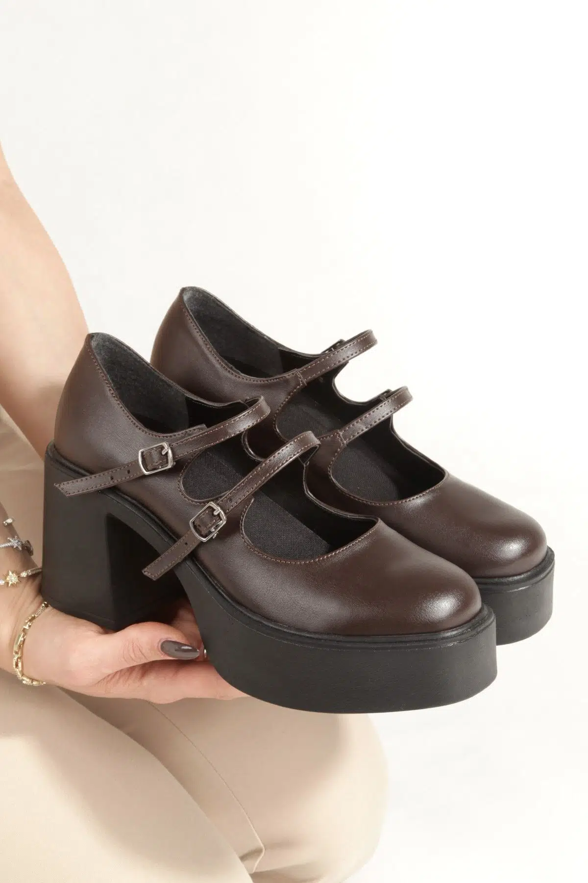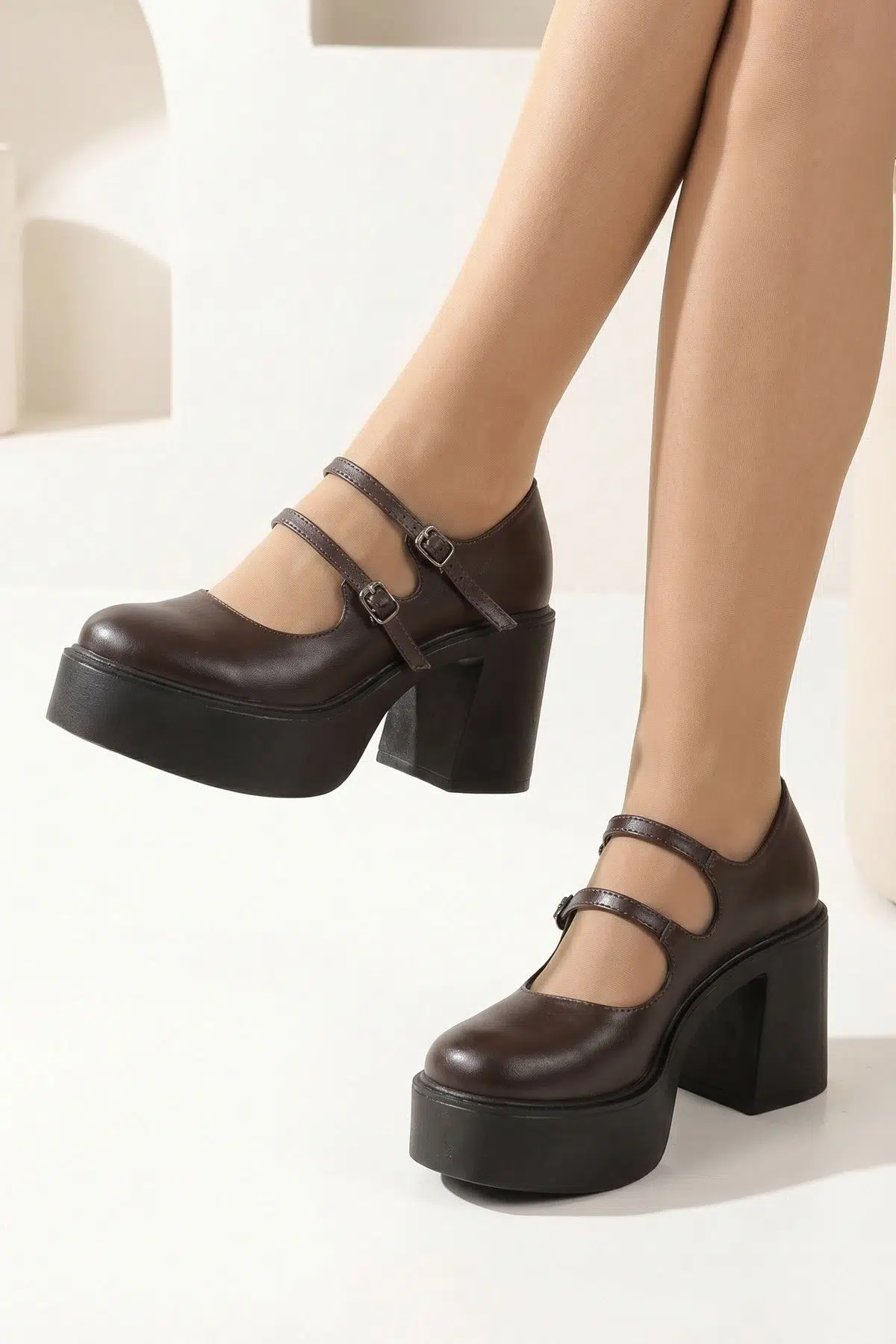| Etiketler | Acı Kahve Rengi Çift Bant Mary Jane Ayakkabı Yüksek Platform Topuklu Kadın Ayakkabı Ciza |