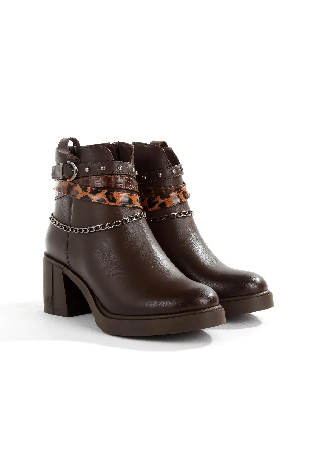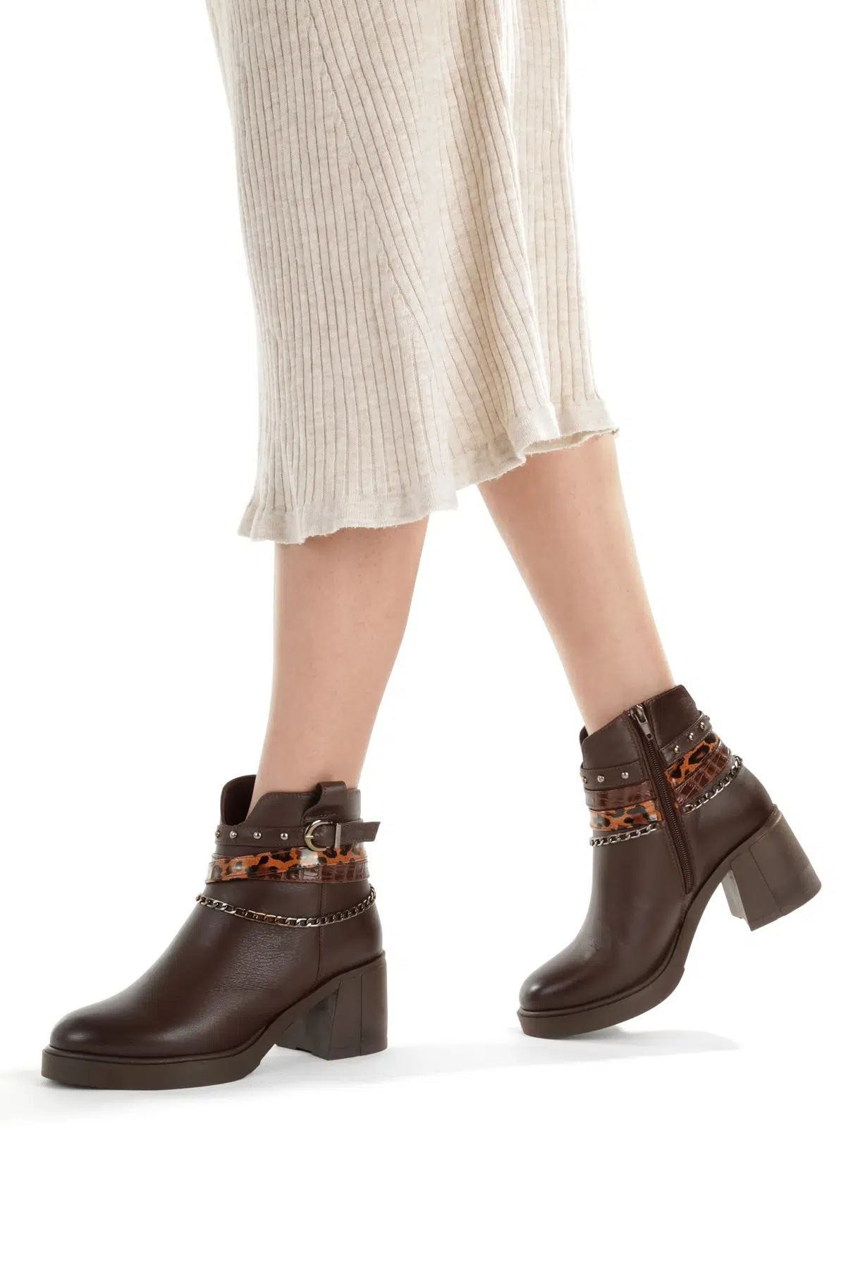 Acı Kahve Rengi Hakiki Deri Kalın Topuklu Günlük Kadın Bot Uldef