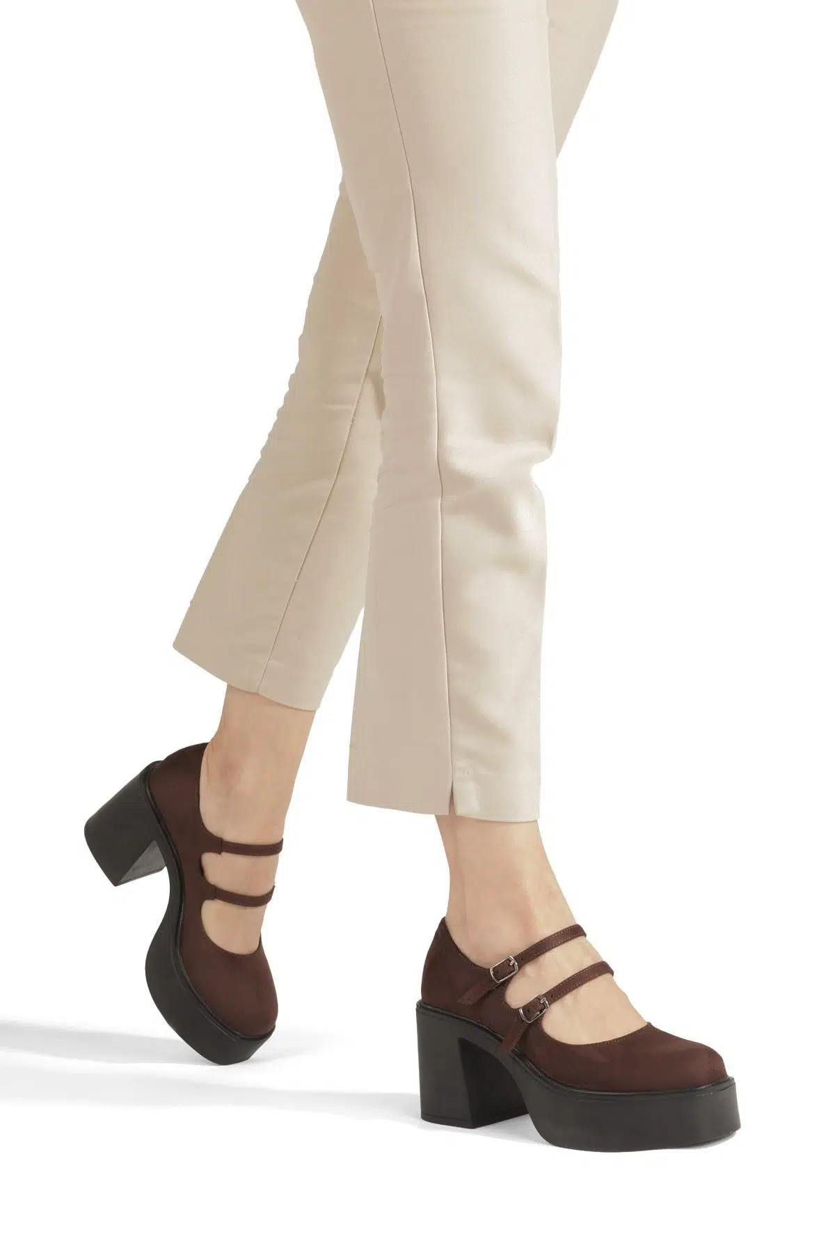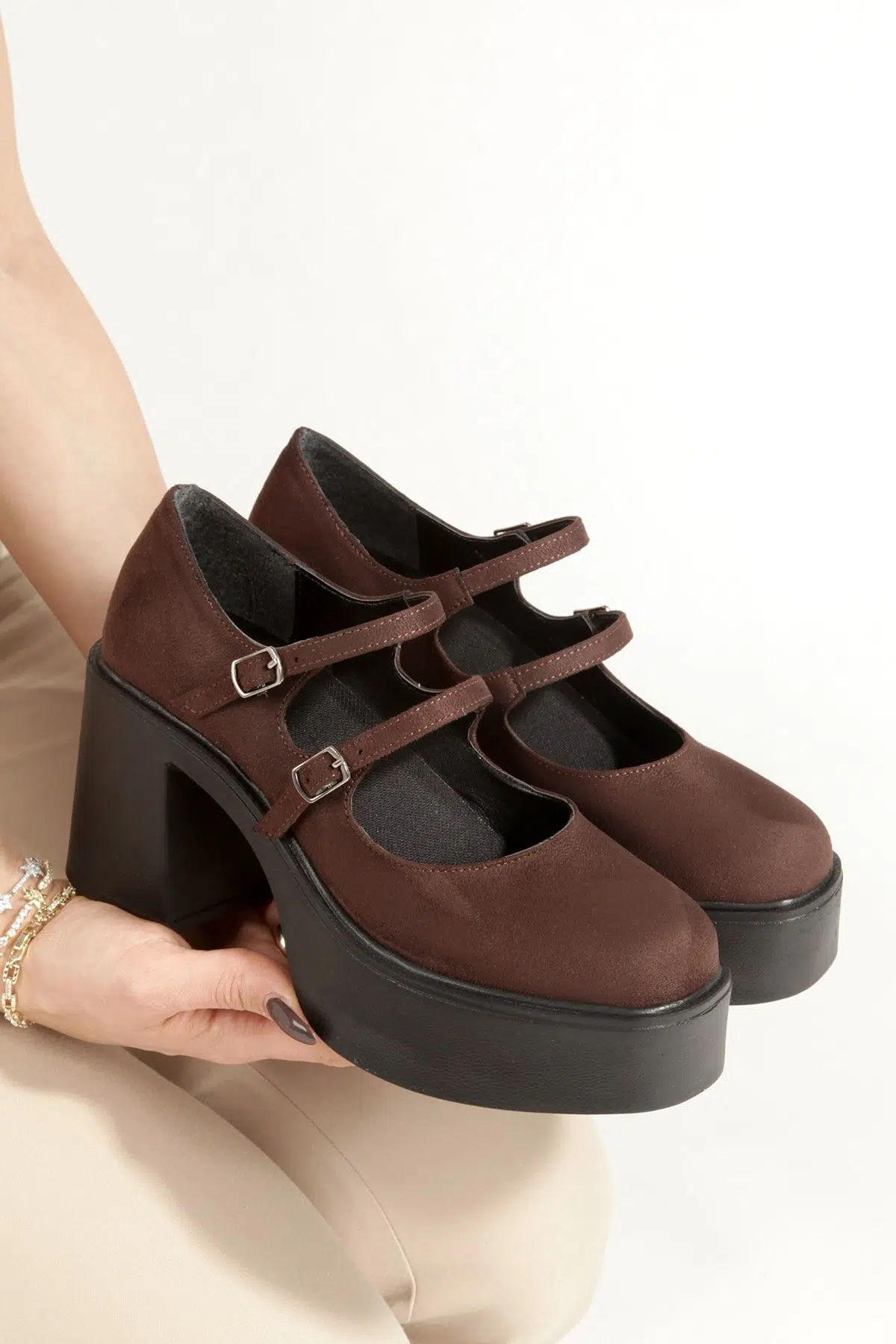 | Etiketler | Acı Kahve Rengi Süet Çift Bant Mary Jane Ayakkabı Yüksek Platform Topuklu Kadın Ayakkabı Ciza |