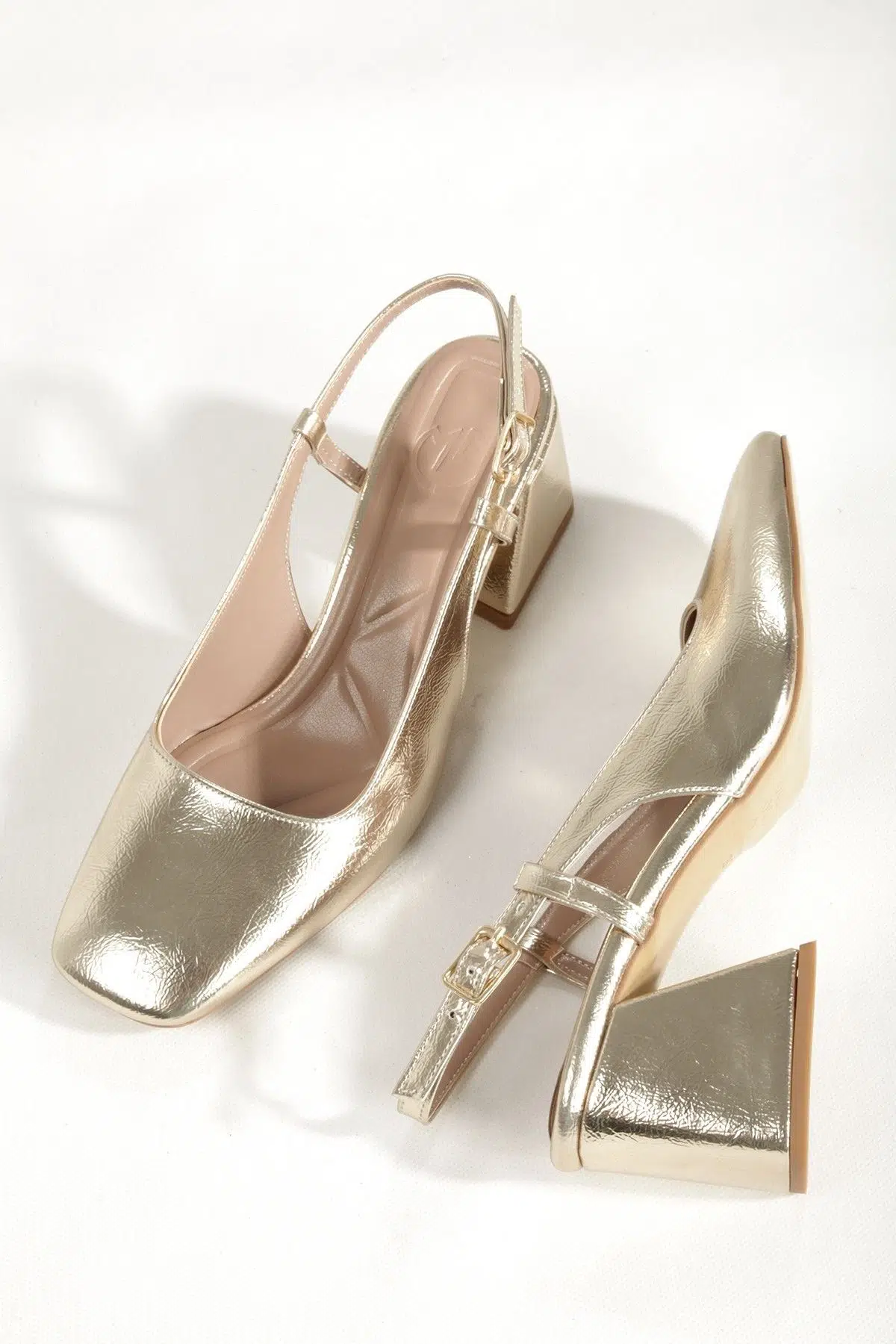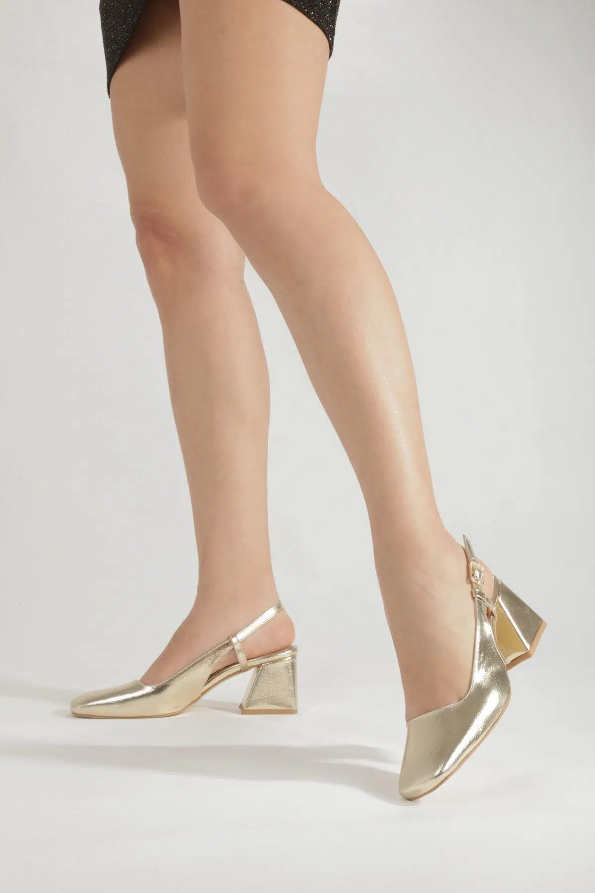 | Etiketler | Altın Gold Dore Renk Kalın Topuklu Küt Burun Abiye Ayakkabı Benova |