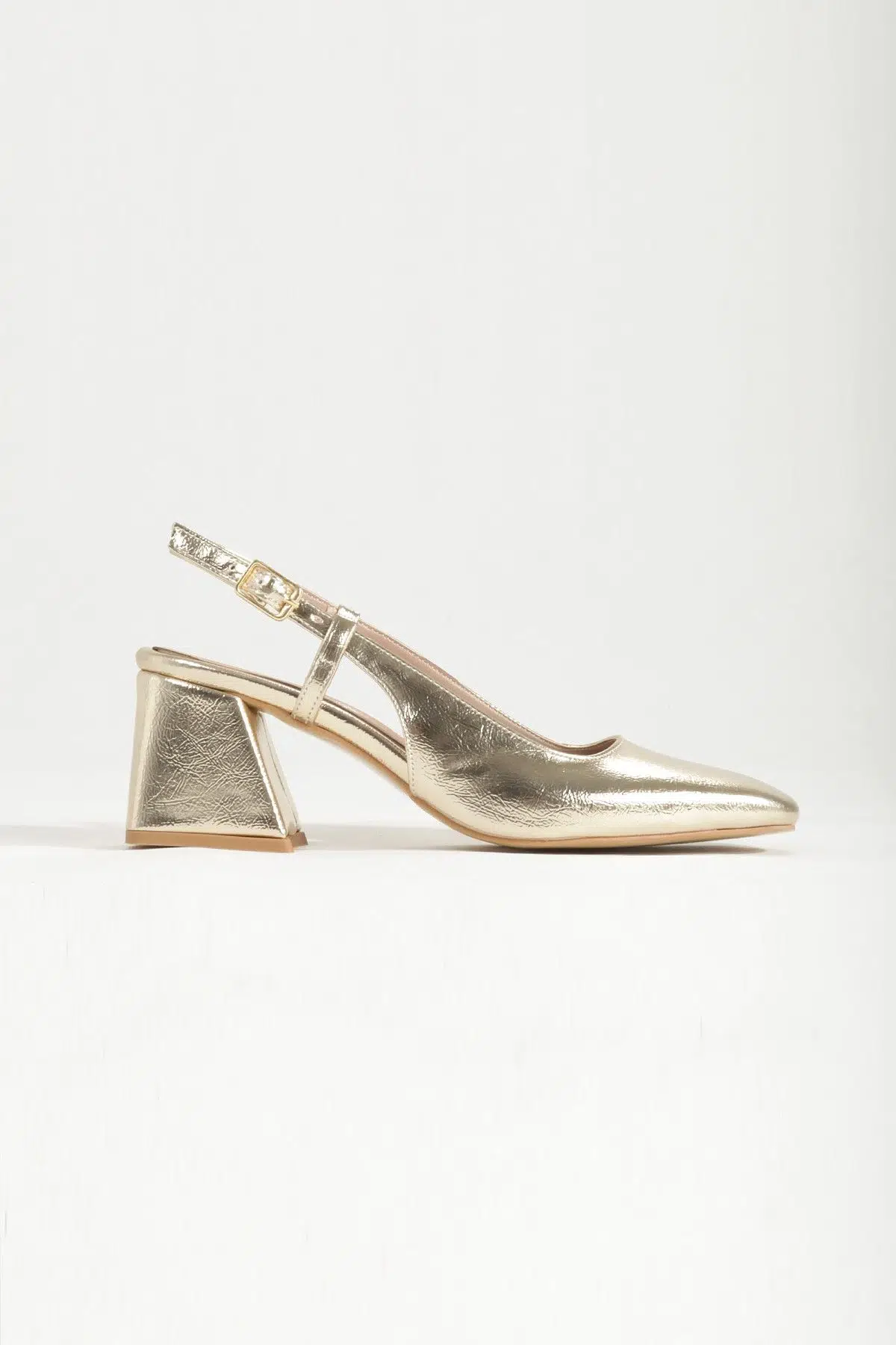 Altın Gold Dore Renk Kalın Topuklu Küt Burun Abiye Ayakkabı Benova Özellikleri