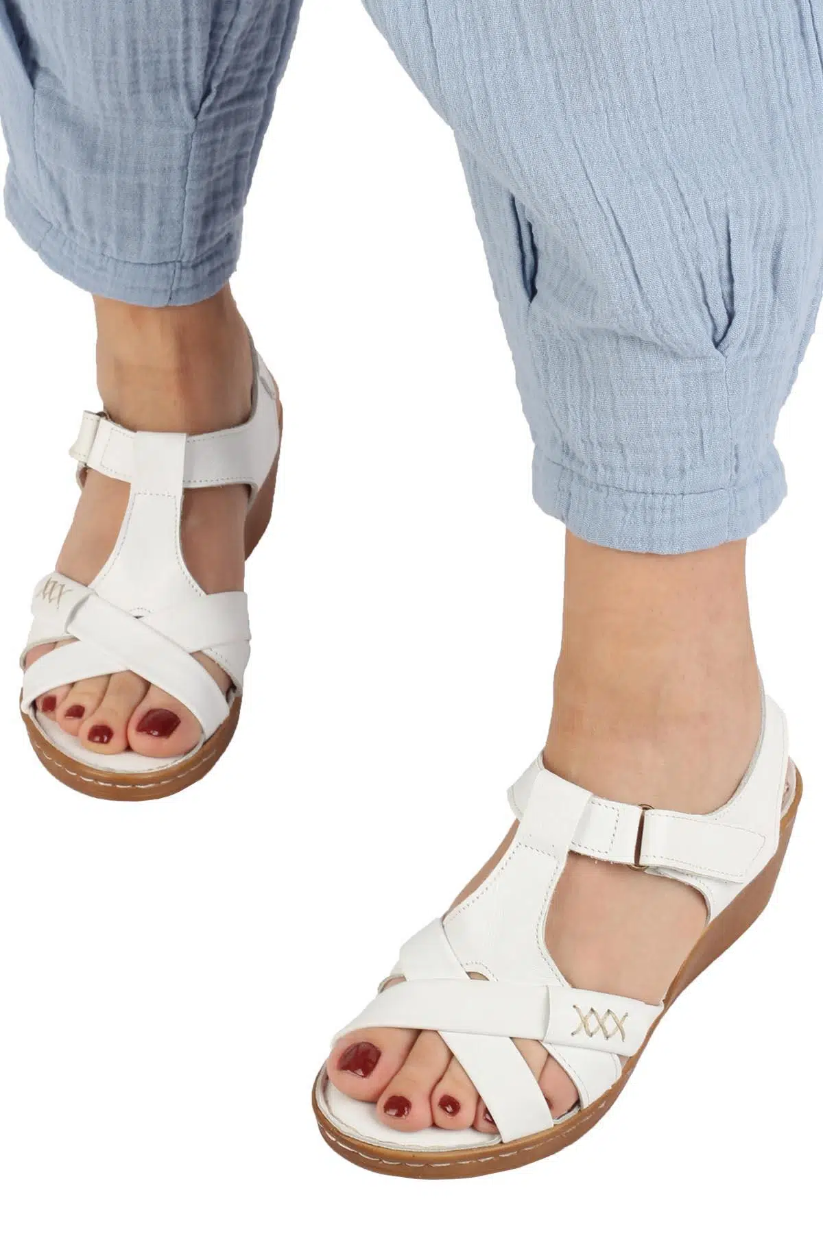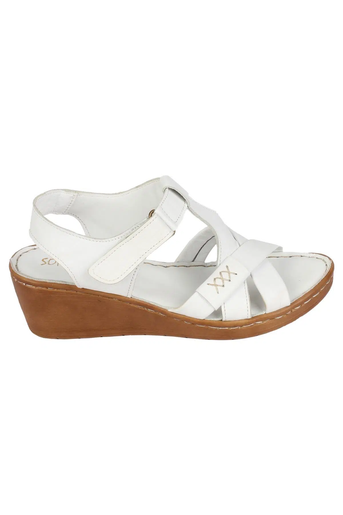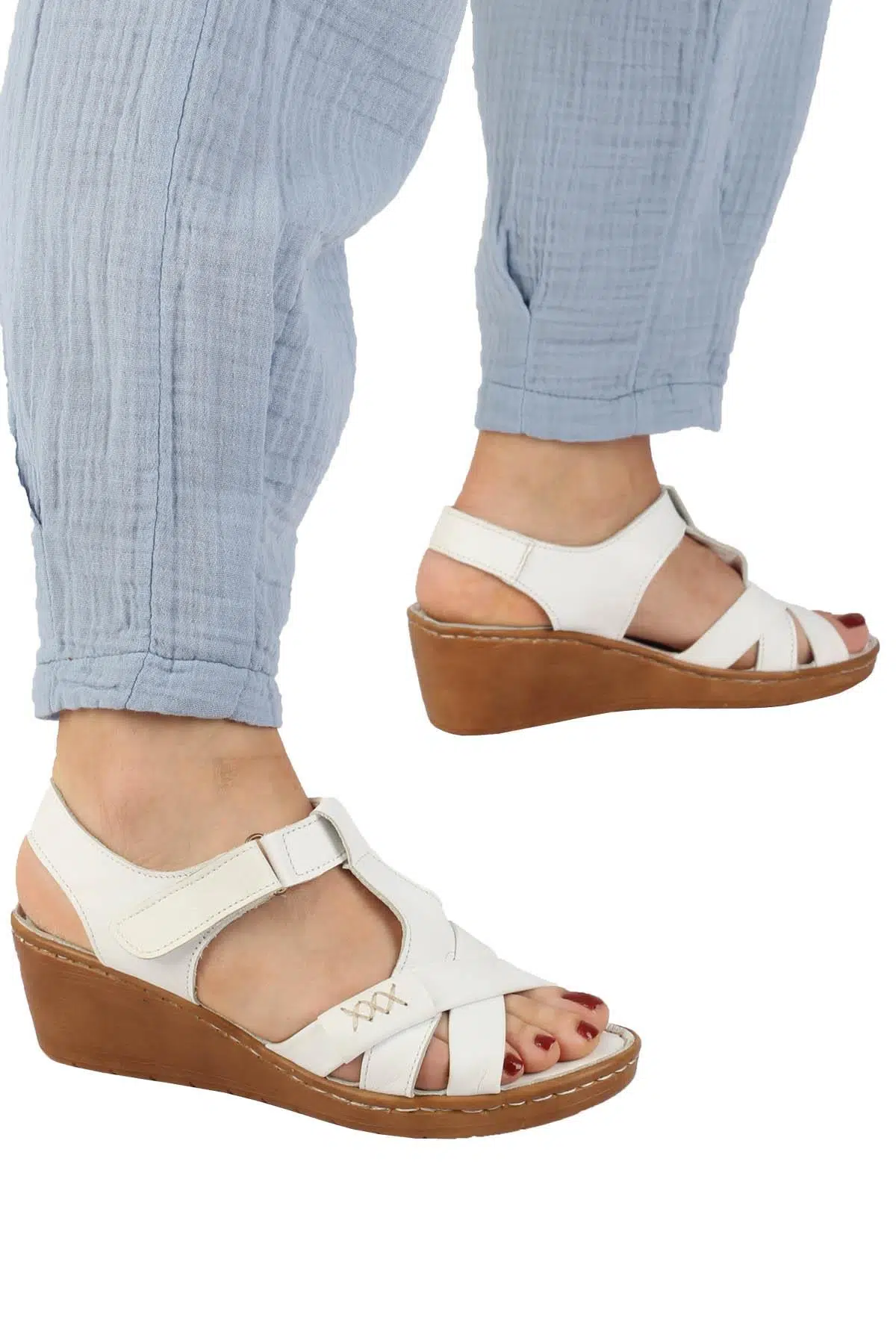 Beyaz Hakiki Deri Dolgu Taban Anatomik Cırtlı Sandalet - Aliya Özellikleri