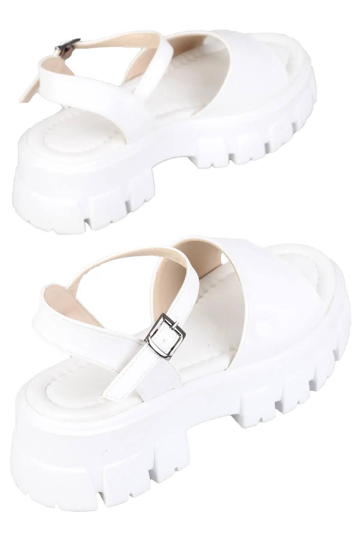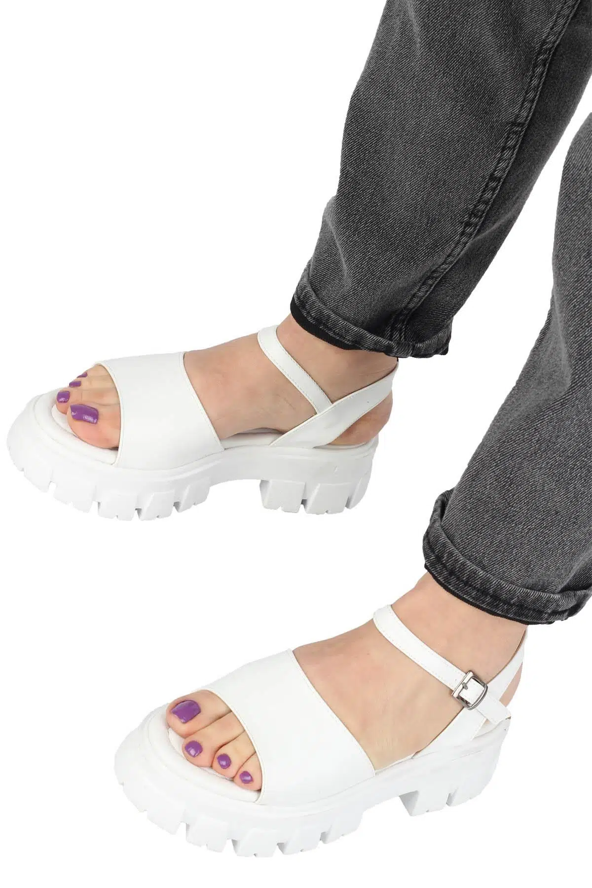 Beyaz Kalın Tabanlı Tek Bant Sandalet - Vispo Özellikleri