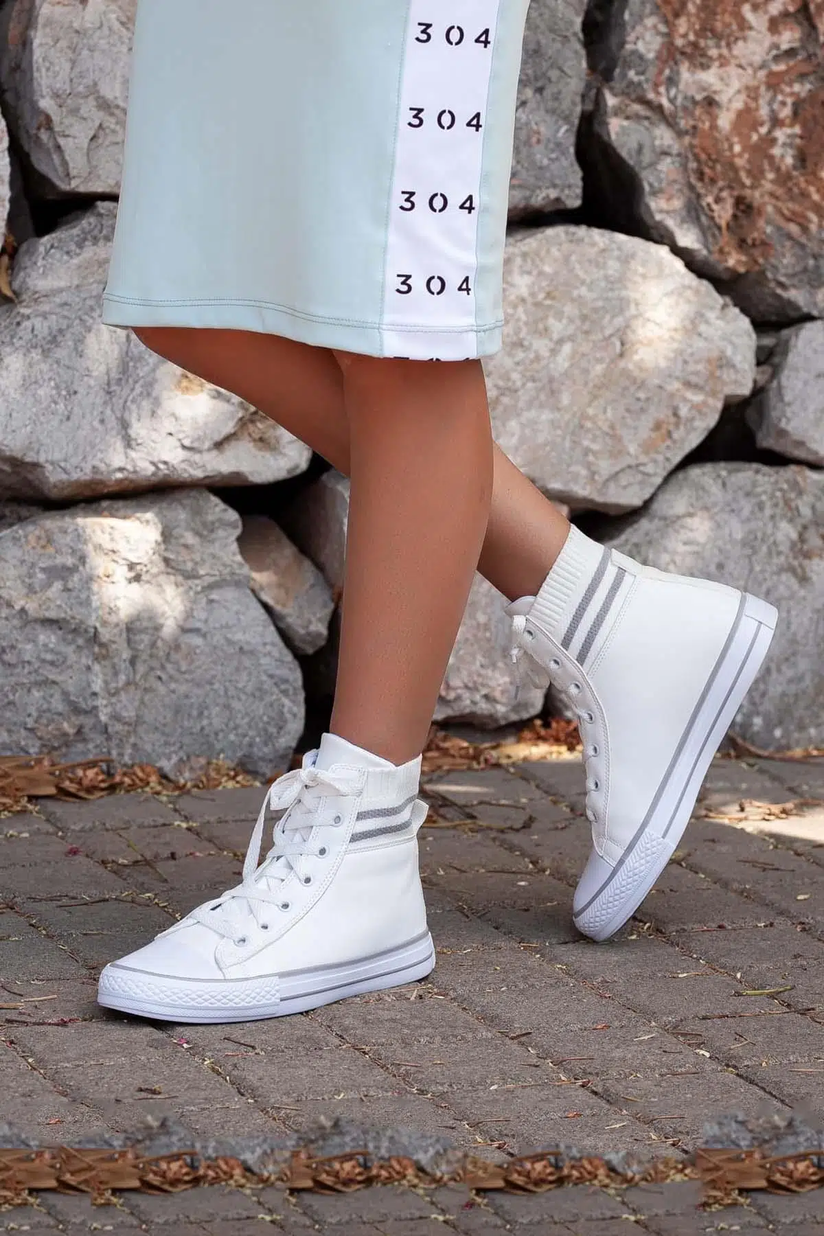 Beyaz Spor Bot Bilekli Spor Ayakkabı - Bora