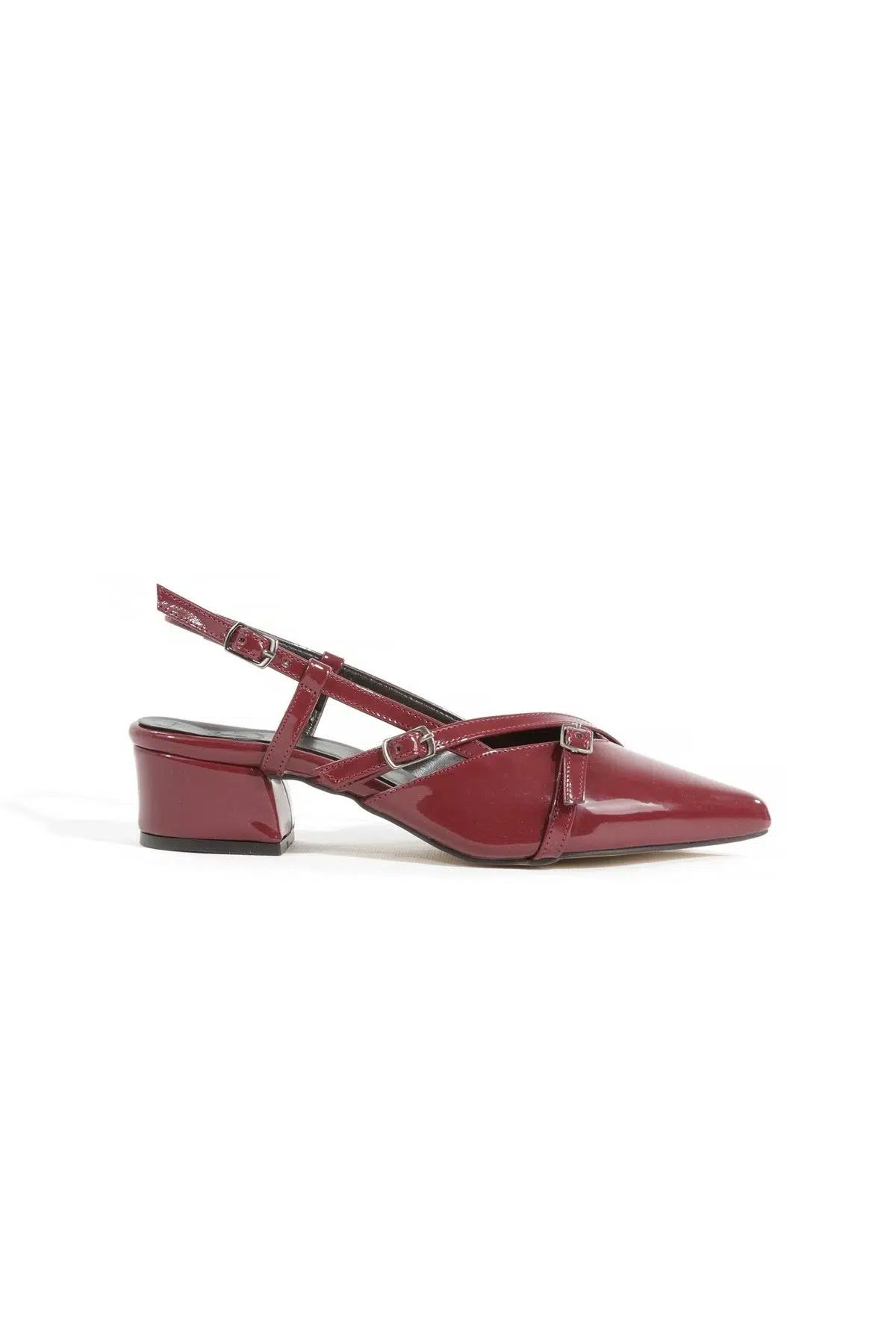 Bordo Rugan Arkası Açık Kısa Kalın Topuklu Stiletto Kadın Ayakkabı Kikpar Özellikleri