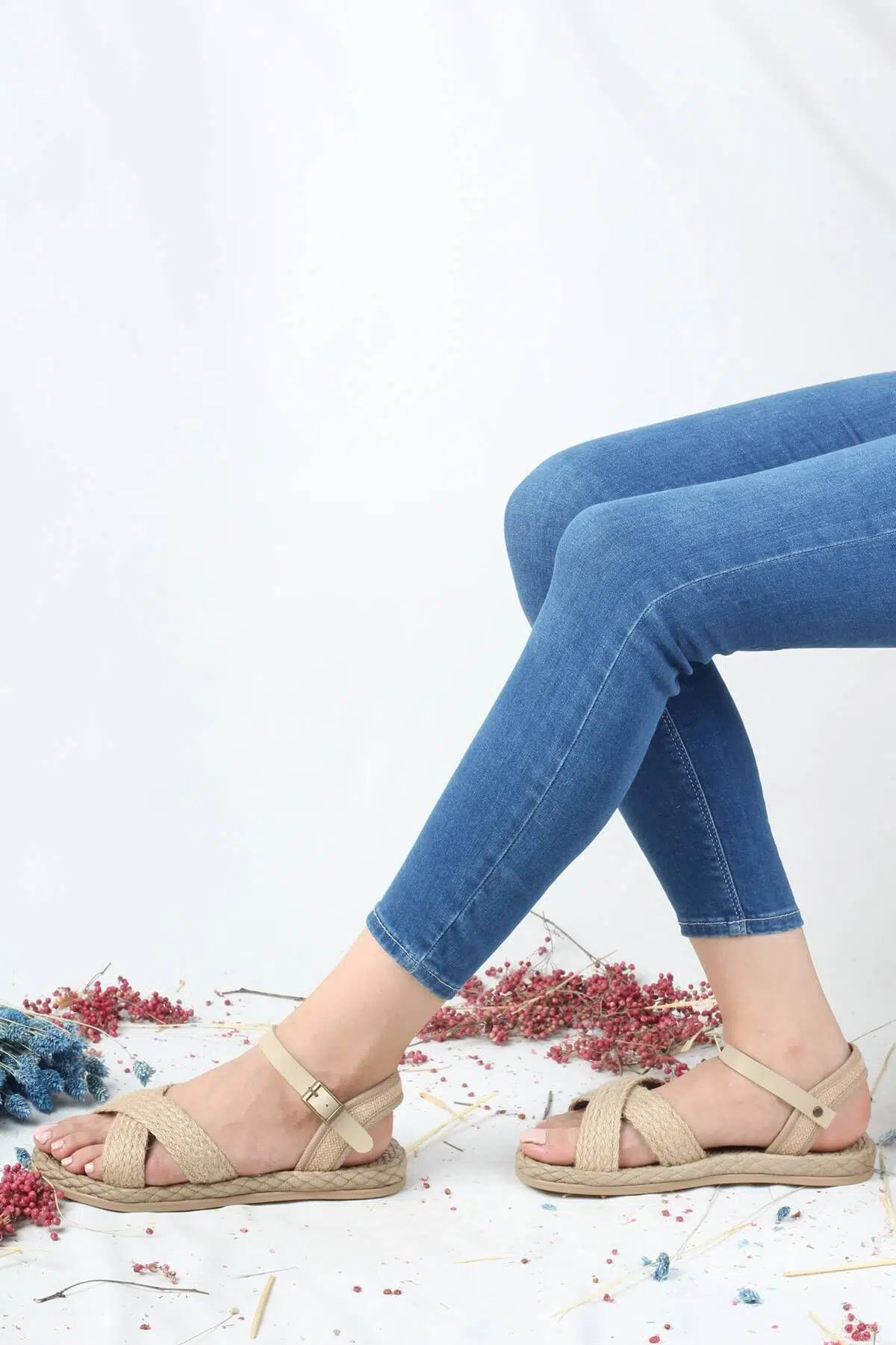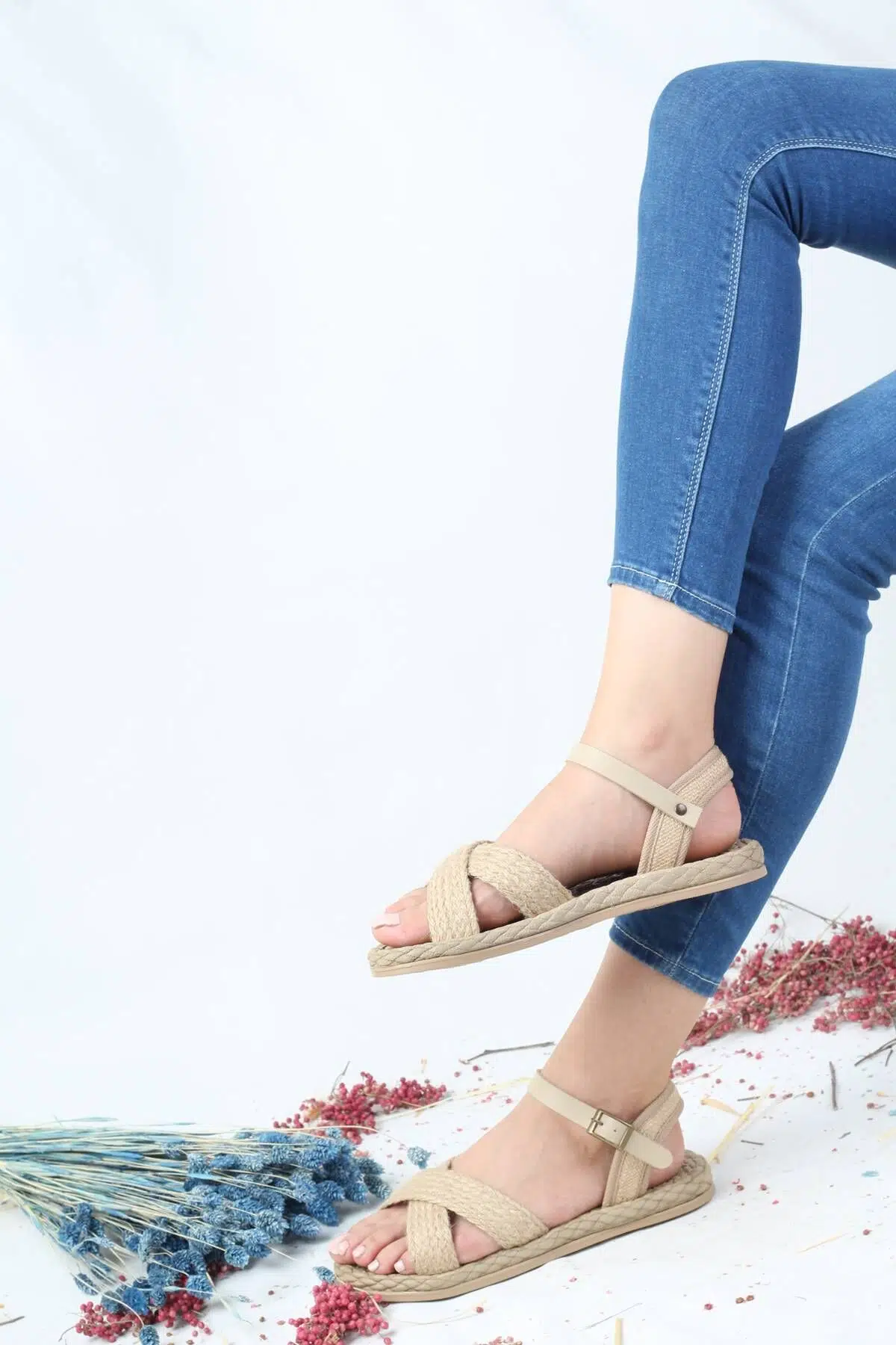 Etiketler | Çapraz Bantlı Hasır Kadın Sandalet - Anba |