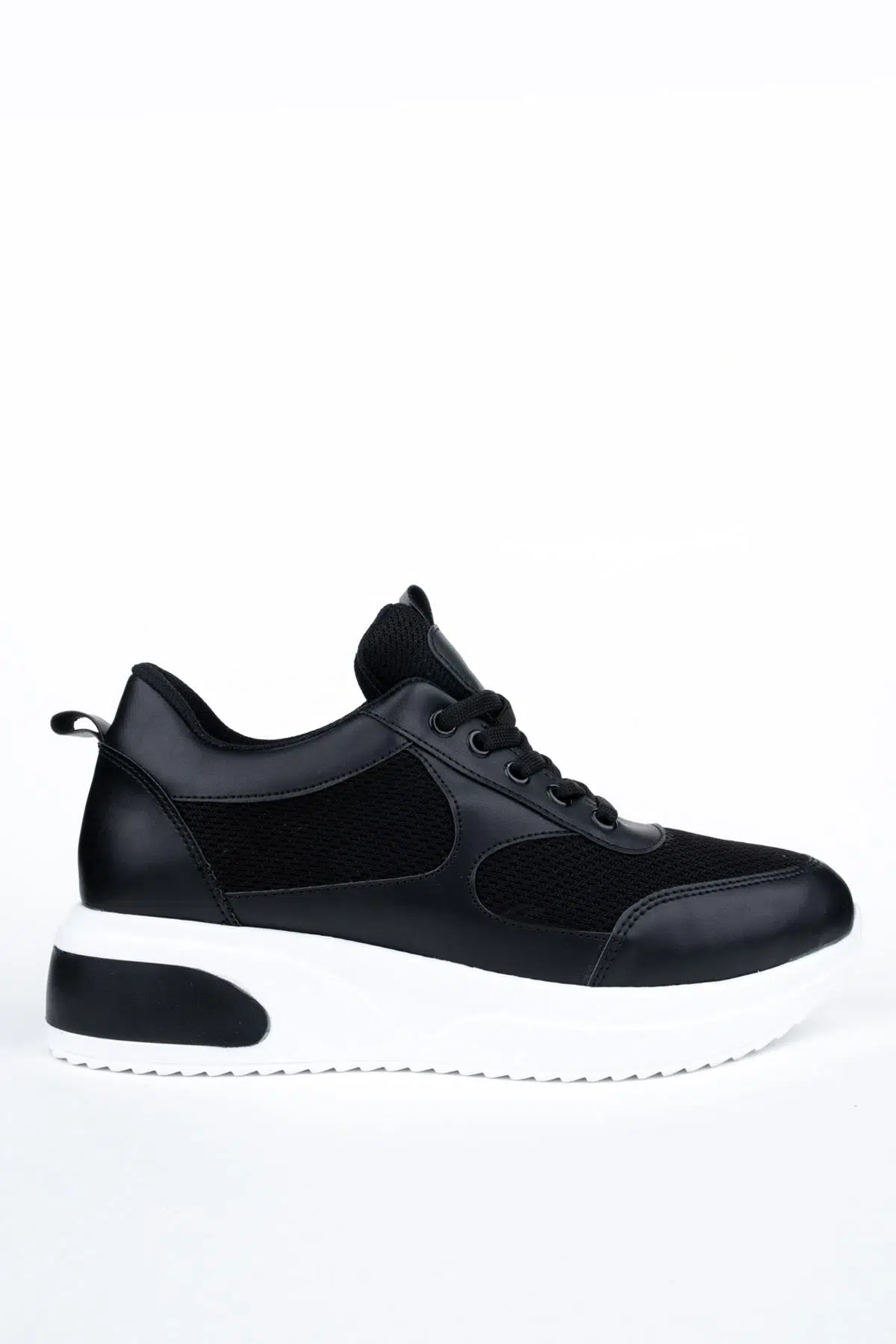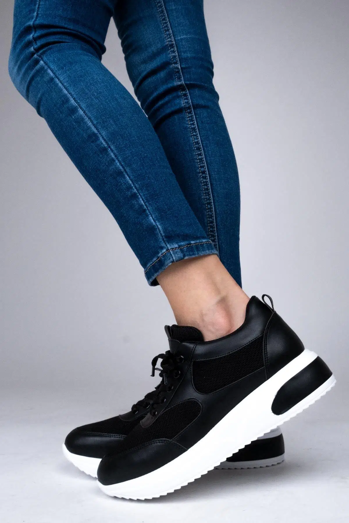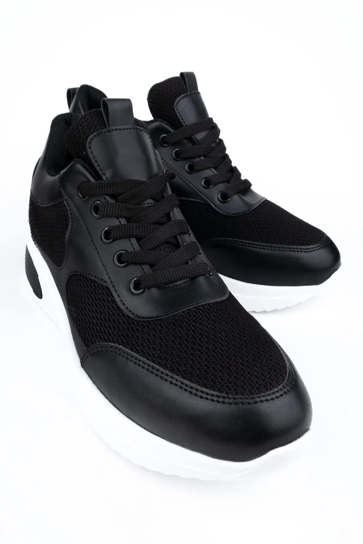 Siyah Fileli Sneaker Dolgu Topuklu Spor Ayakkabı - Mildy
