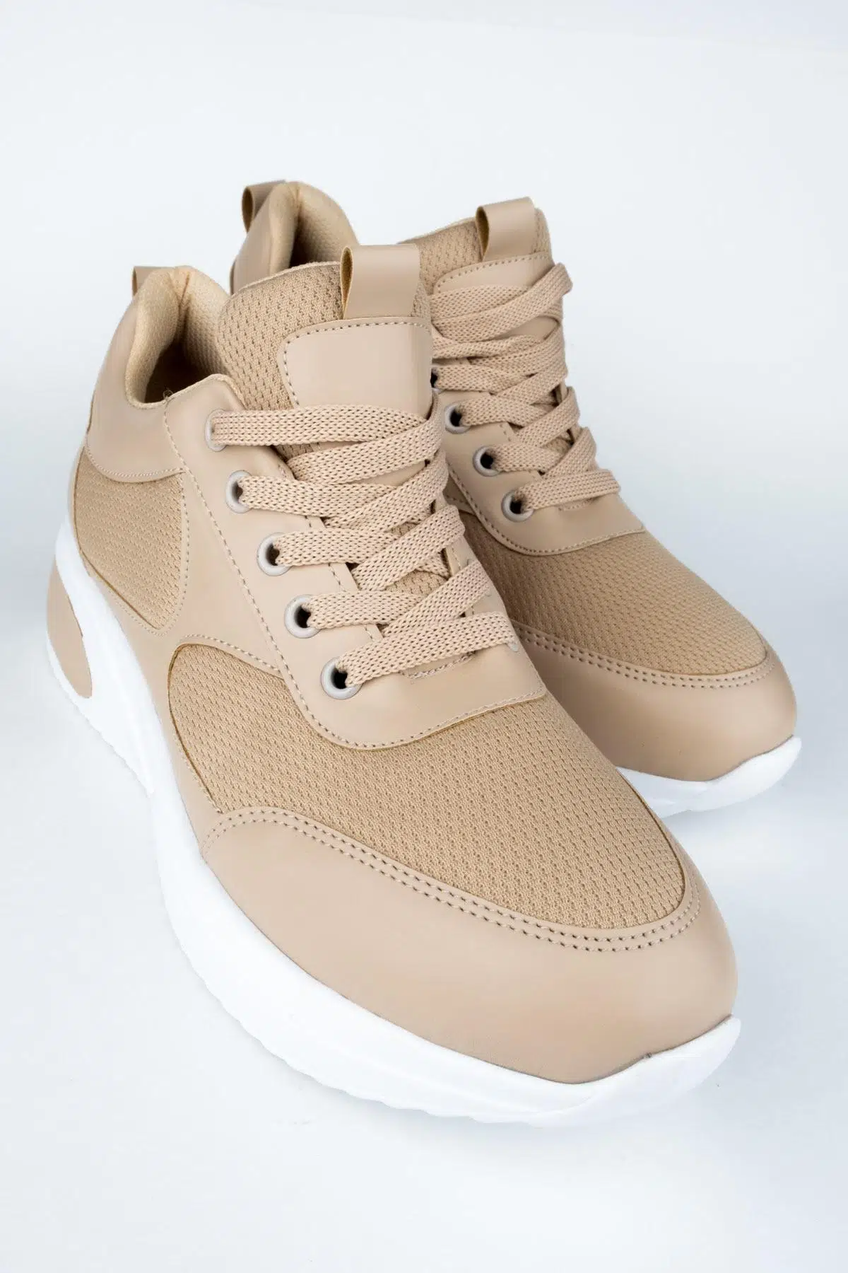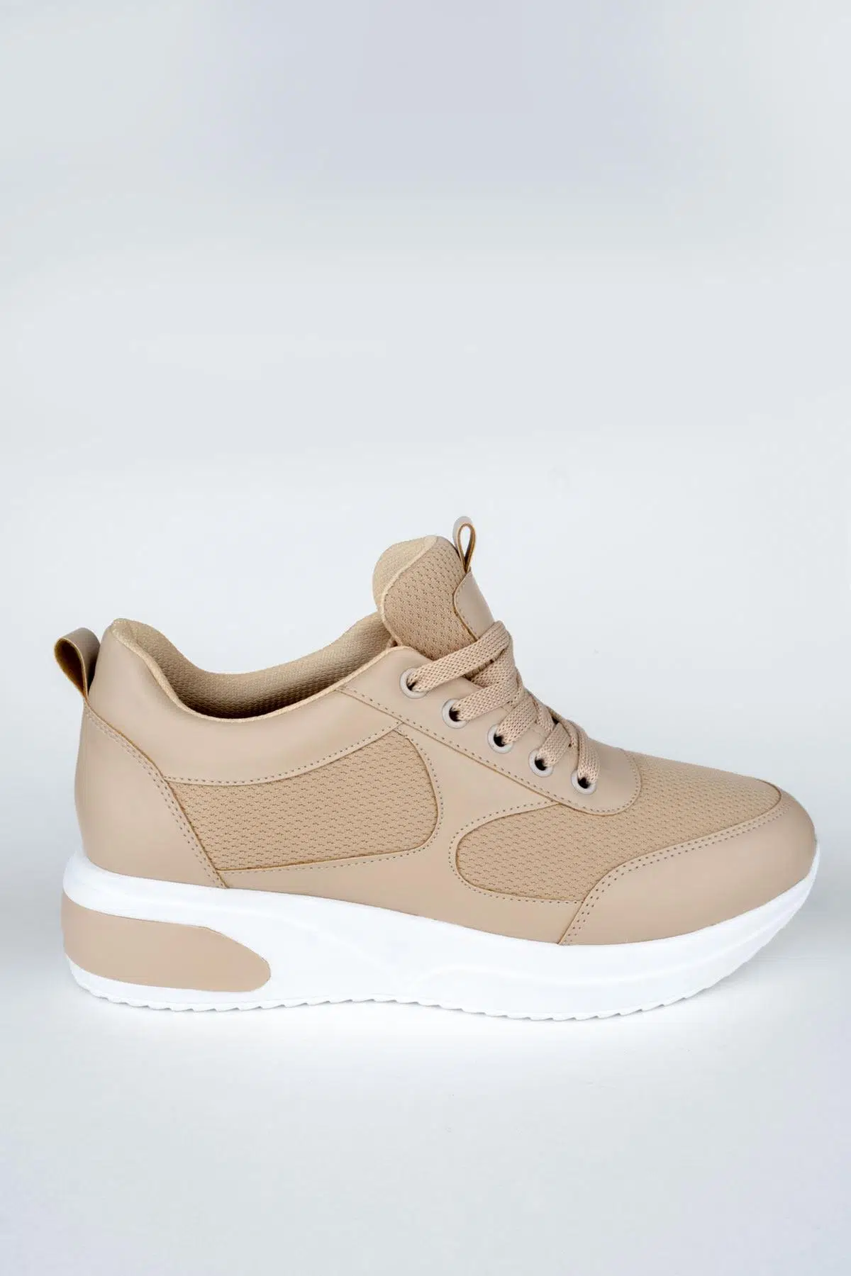 Dolgu Topuklu Ten Sneaker Baskılı Spor Ayakkabı - Mildy