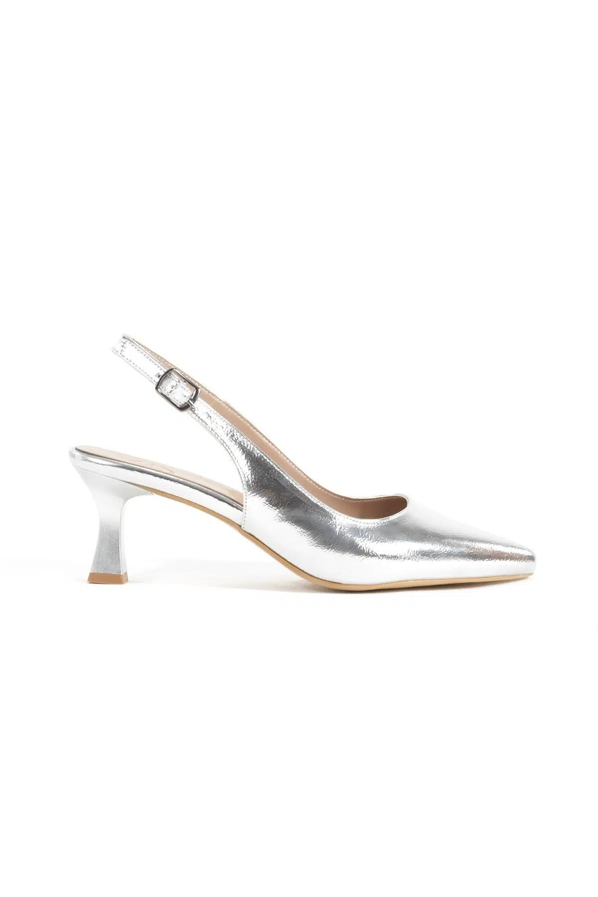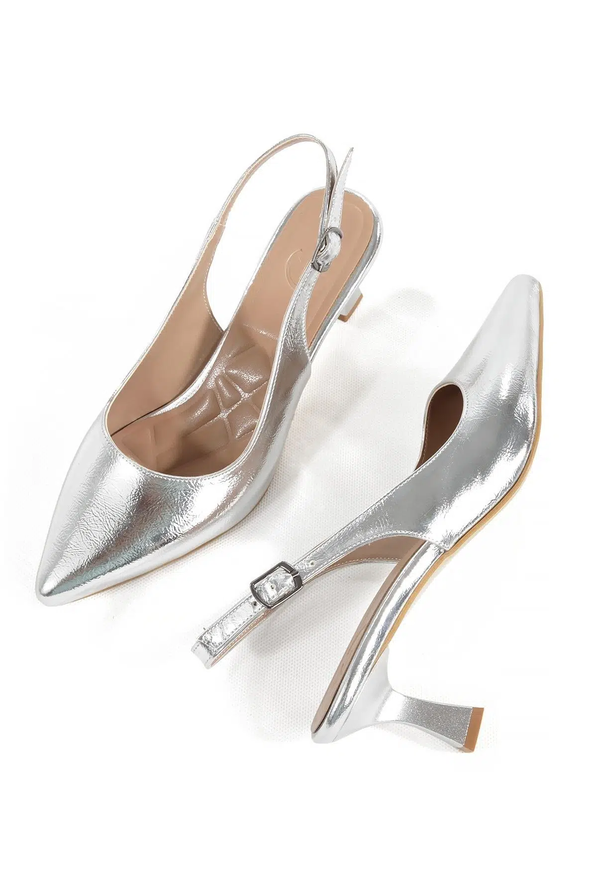 Gümüş Lame Kısa Kadeh Topuklu Arkası Açık Sivri Abiye Stiletto Ayakkabı Kas Özellikleri