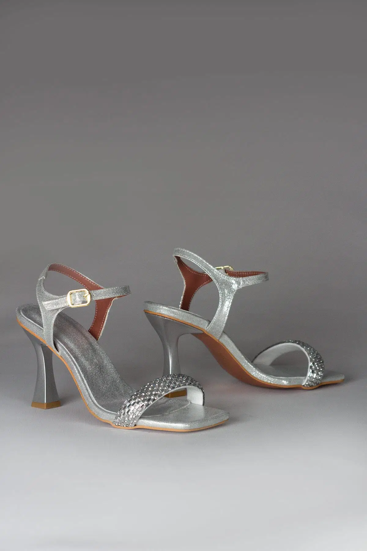 Etiketler | Gümüş Tek Bantlı Taşlı Abiye Ayakkabı - Friza |