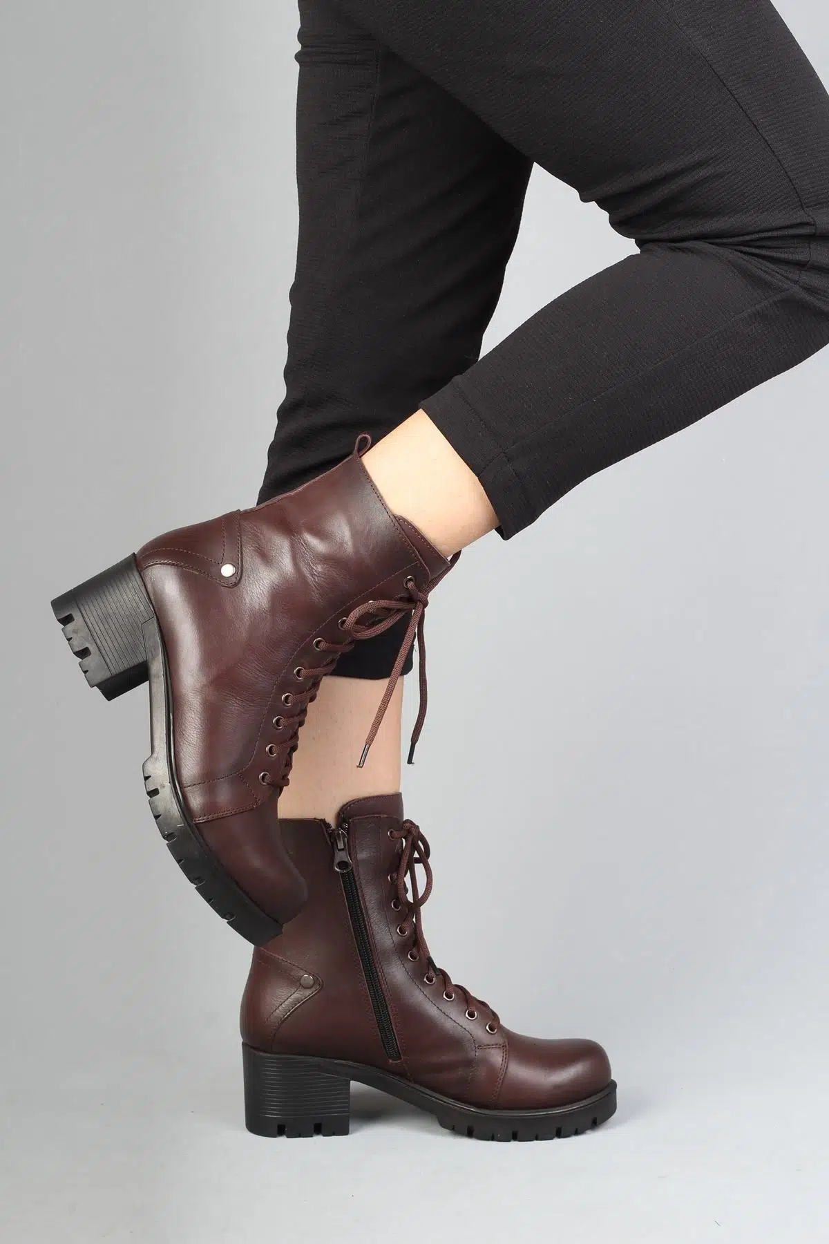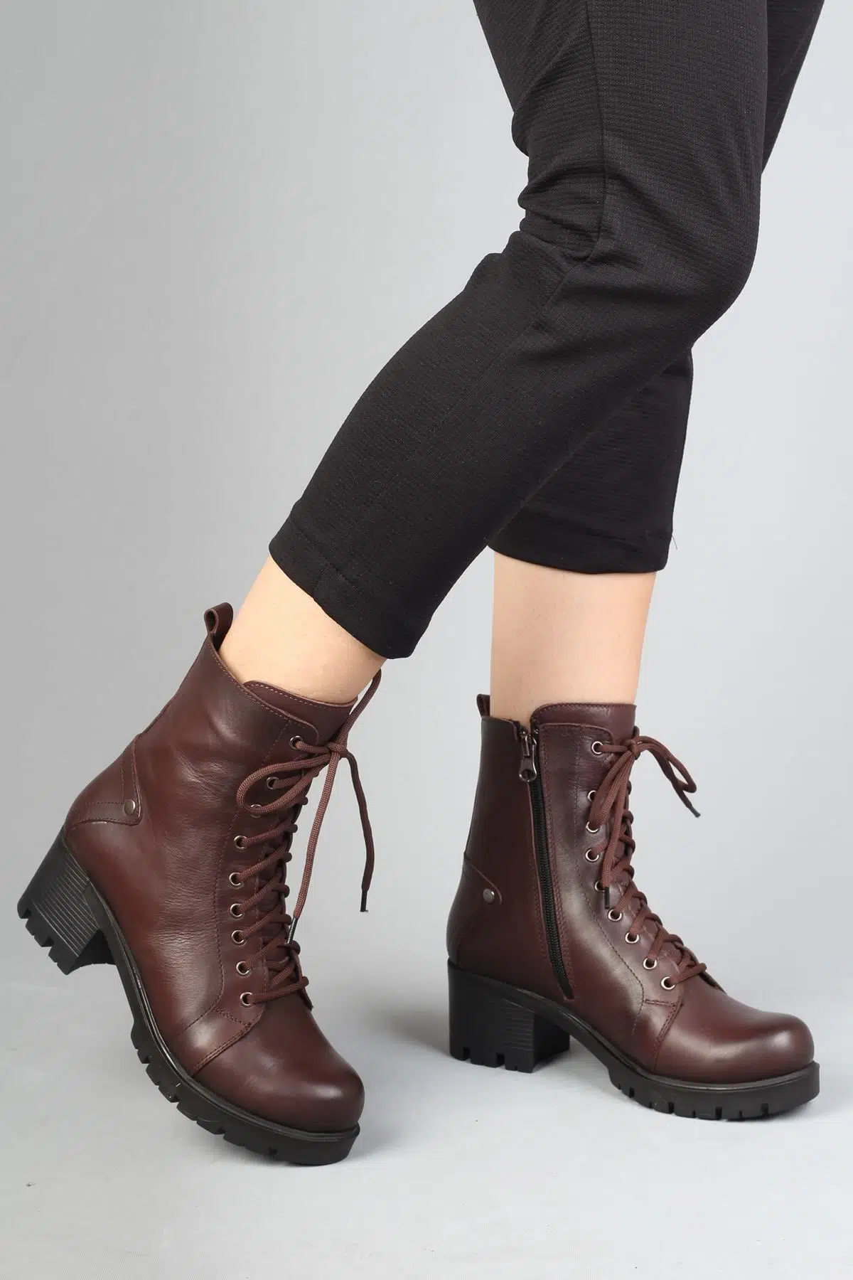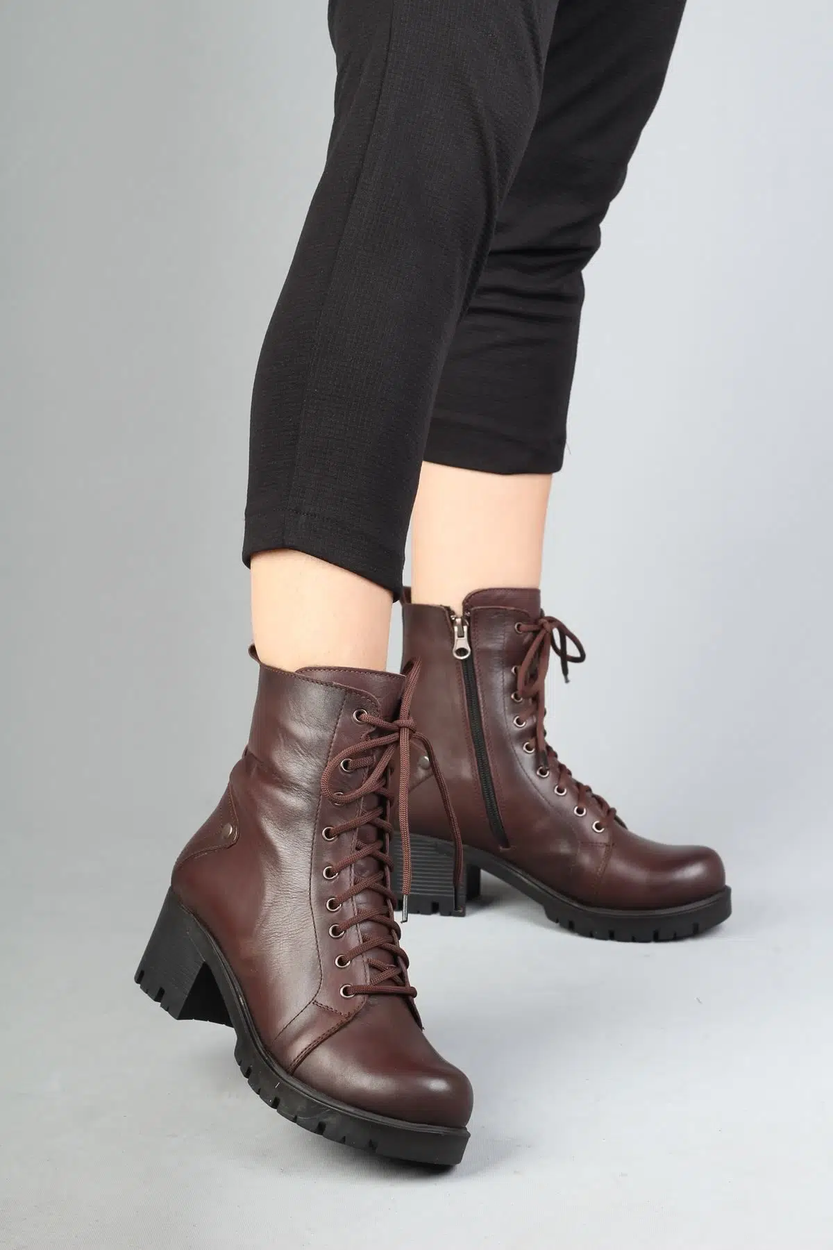 Hakiki Deri Kısa Platform Topuklu Kahverengi Postal Kadın Bot - Tarander Özellikleri