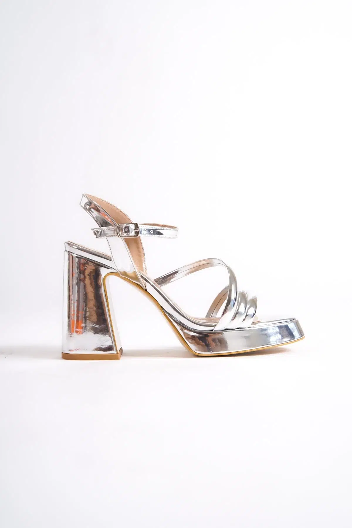 İbiza Gümüş Parlak Kalın Platform Topuklu Ayakkabı