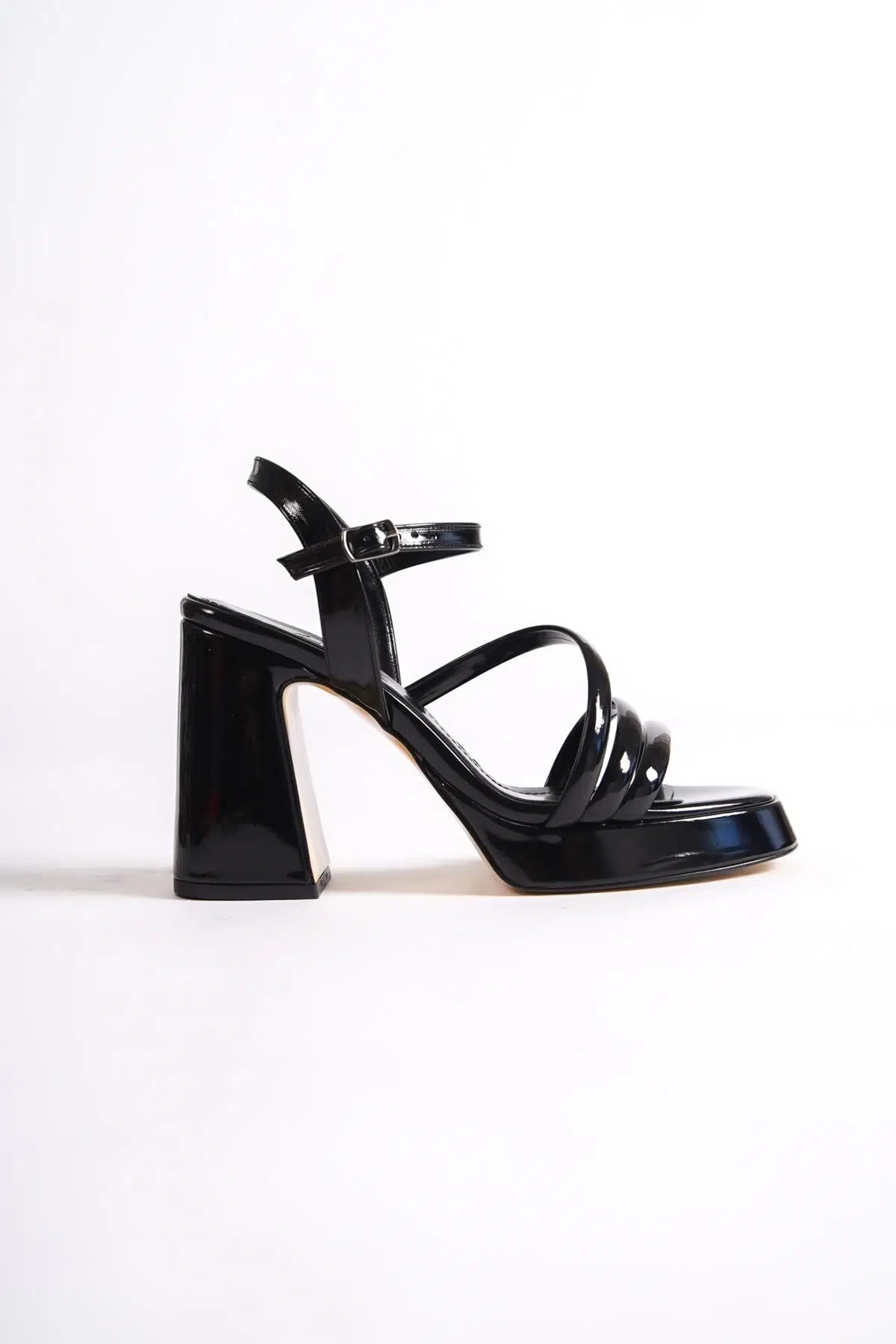 İbiza Siyah Rugan Kalın Platform Topuklu Ayakkabı