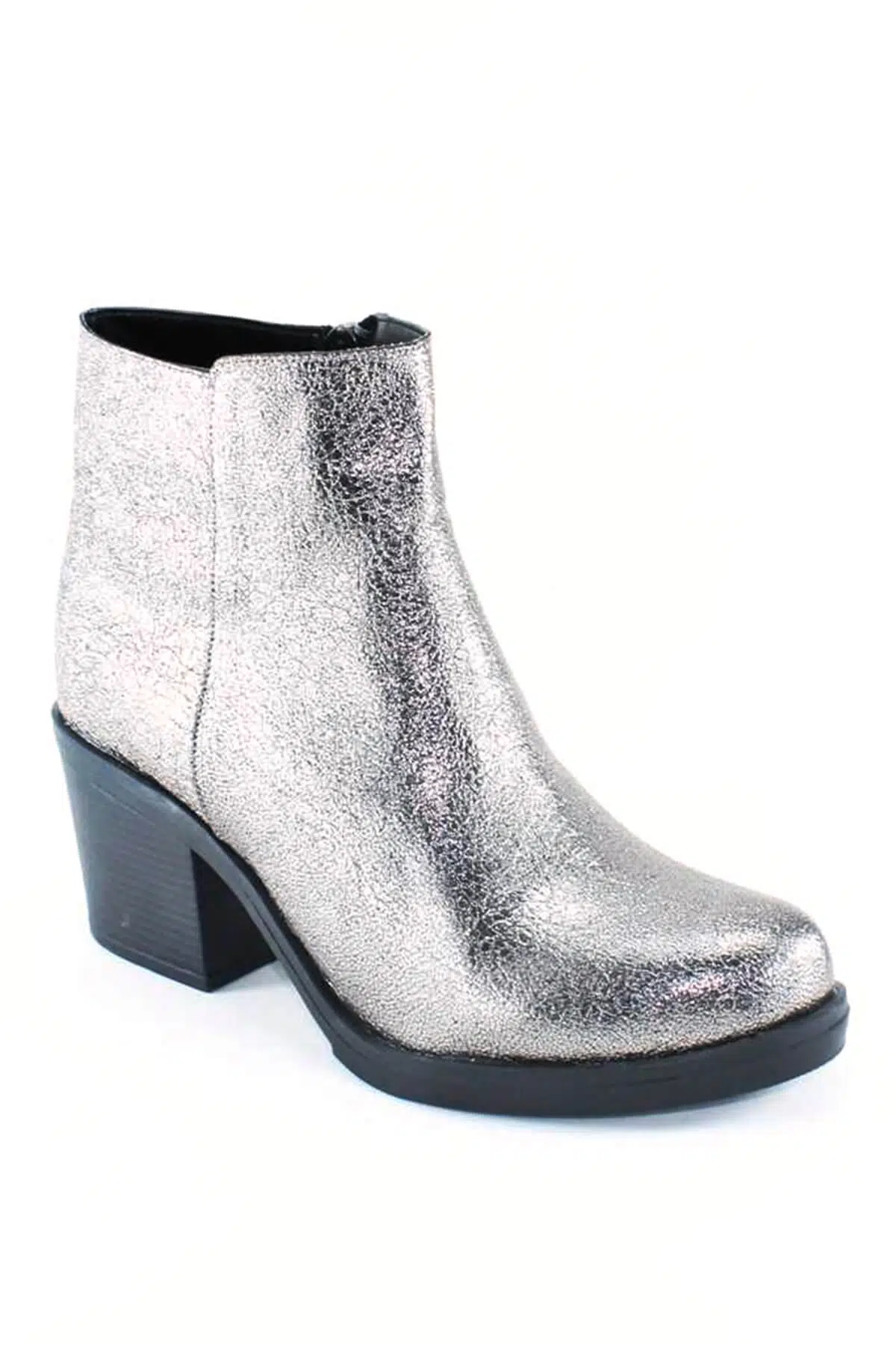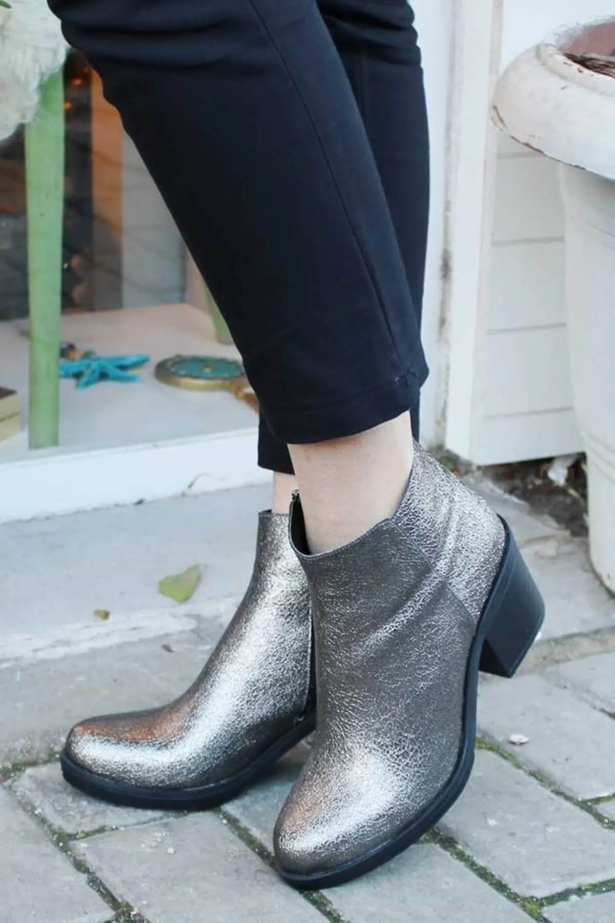 Işıltılı Az Topuklu Şık Bayan Bot Gümüş Gri
