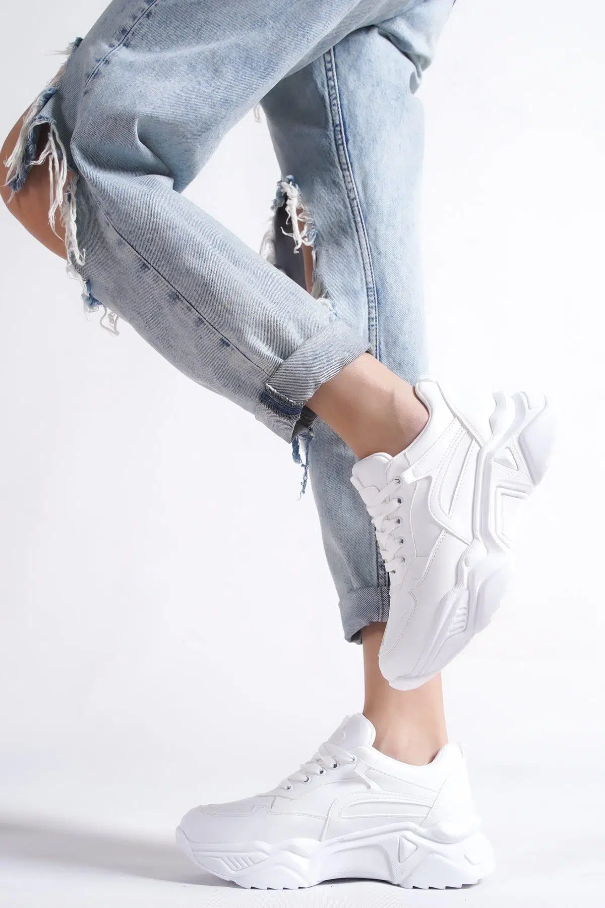 Kadın Kalın Tabanlı Düz Beyaz Sneaker Spor Ayakkabı - Fashi Özellikleri