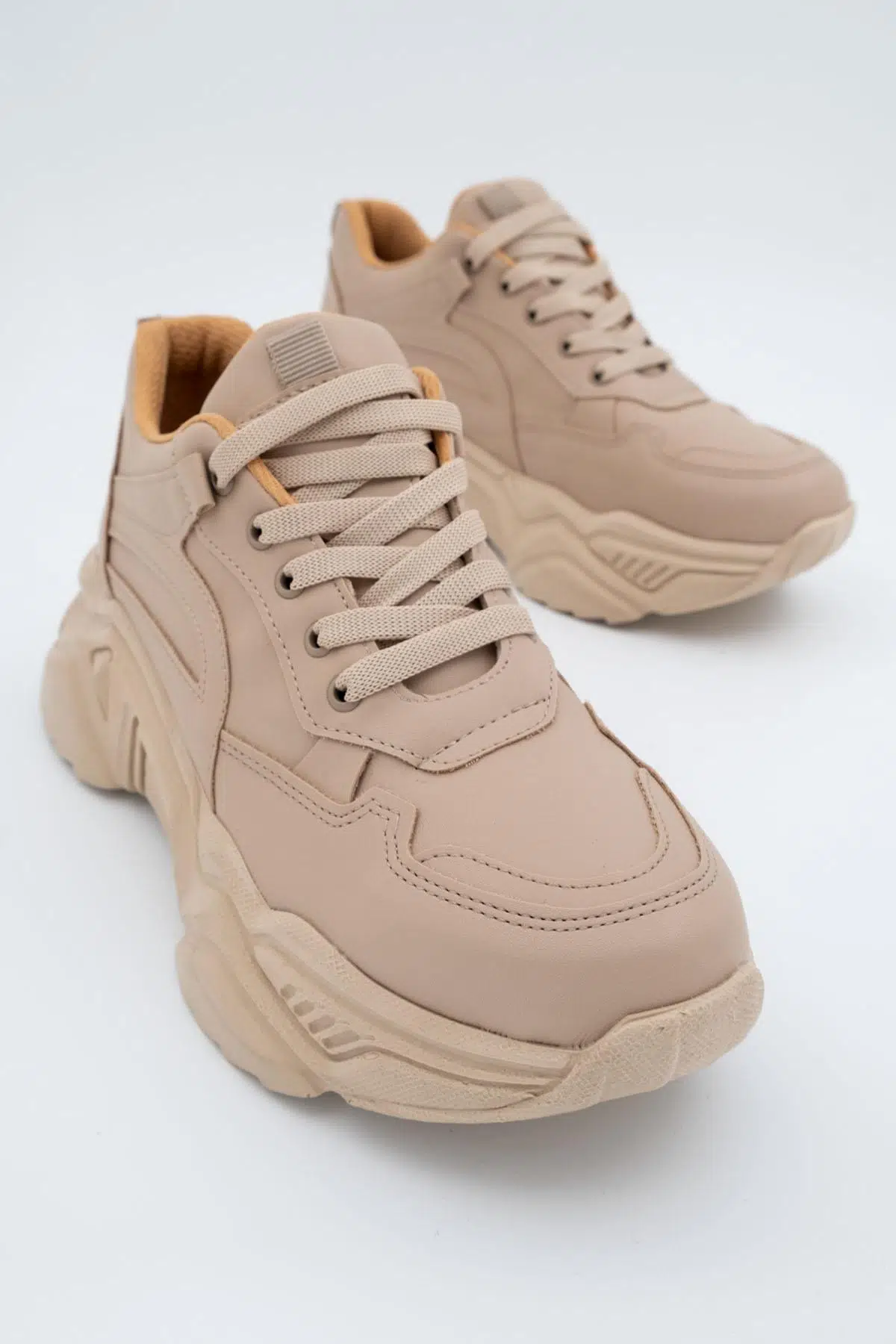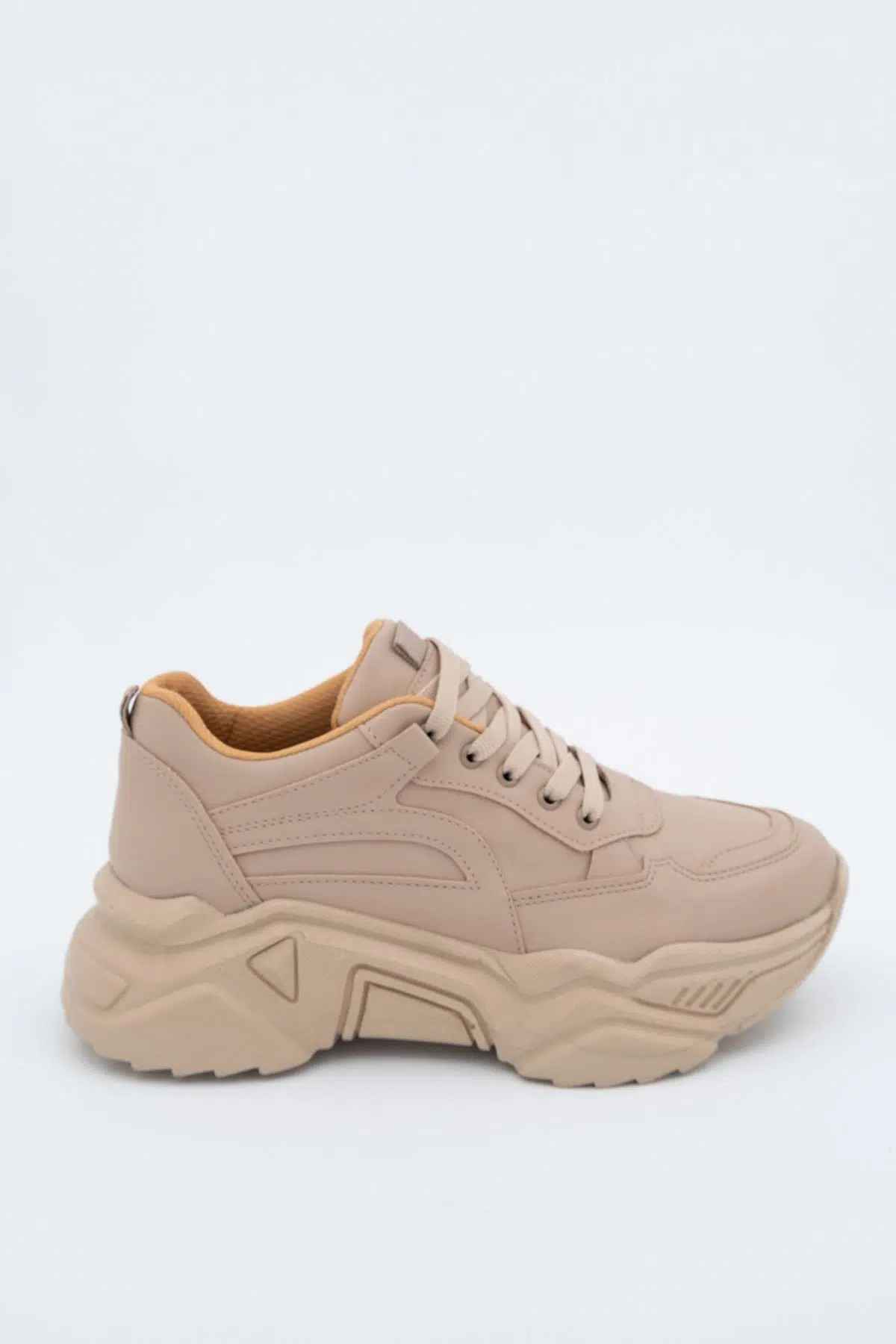 Kadın Kalın Tabanlı Düz Ten Sneaker Spor Ayakkabı - Fashi