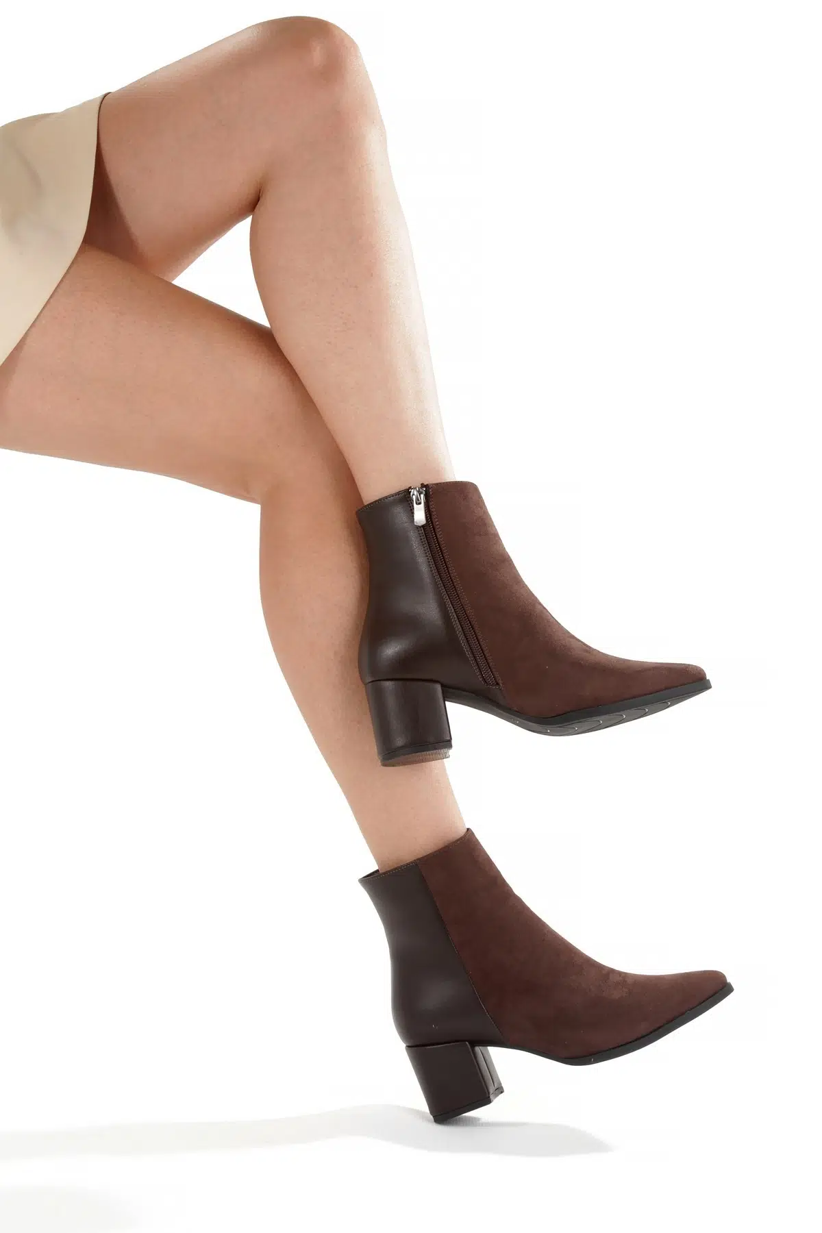 Kahve Rengi Süet Kısa Kalın Topuklu Kadın Bot Hudson Özellikleri