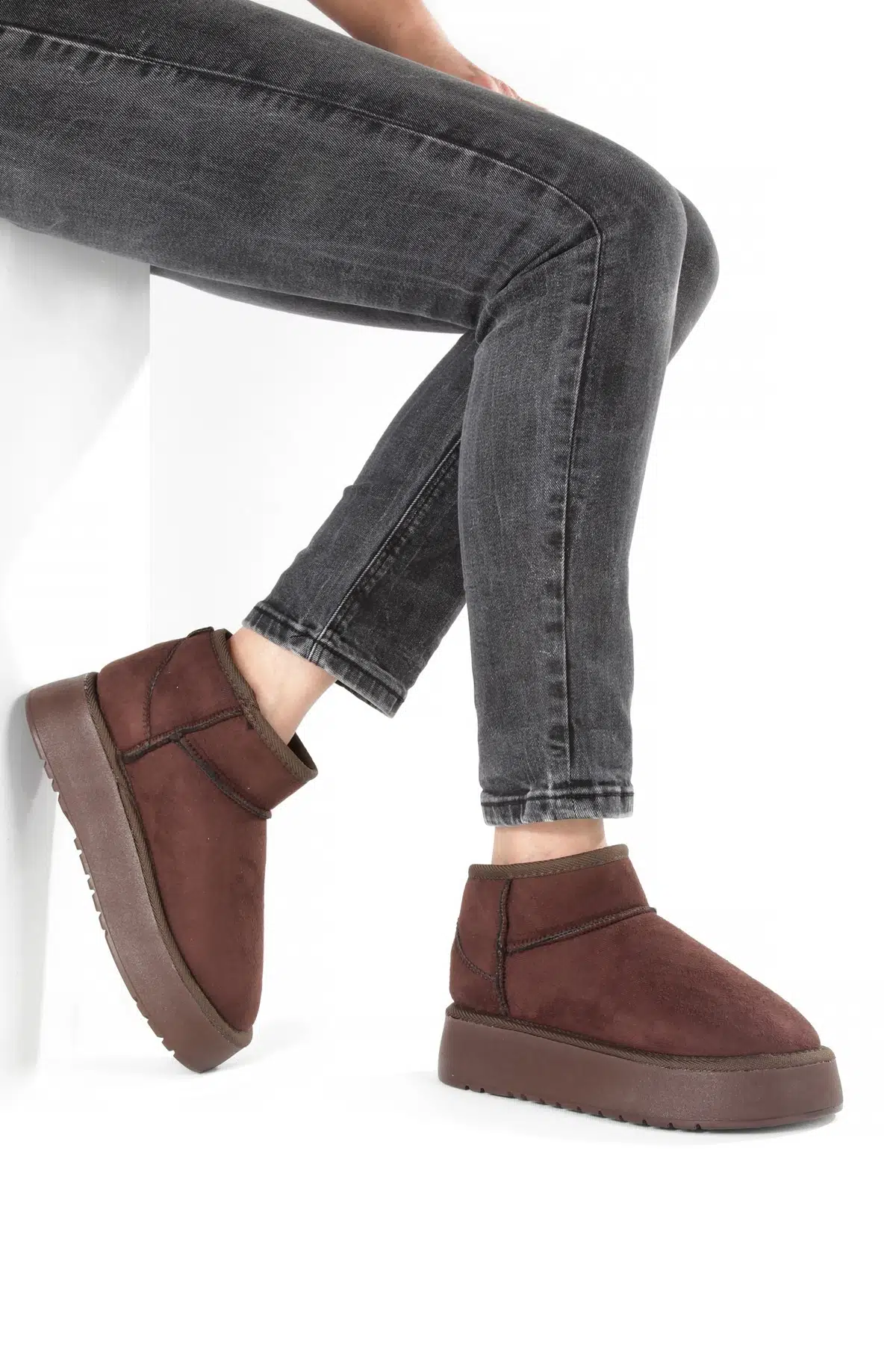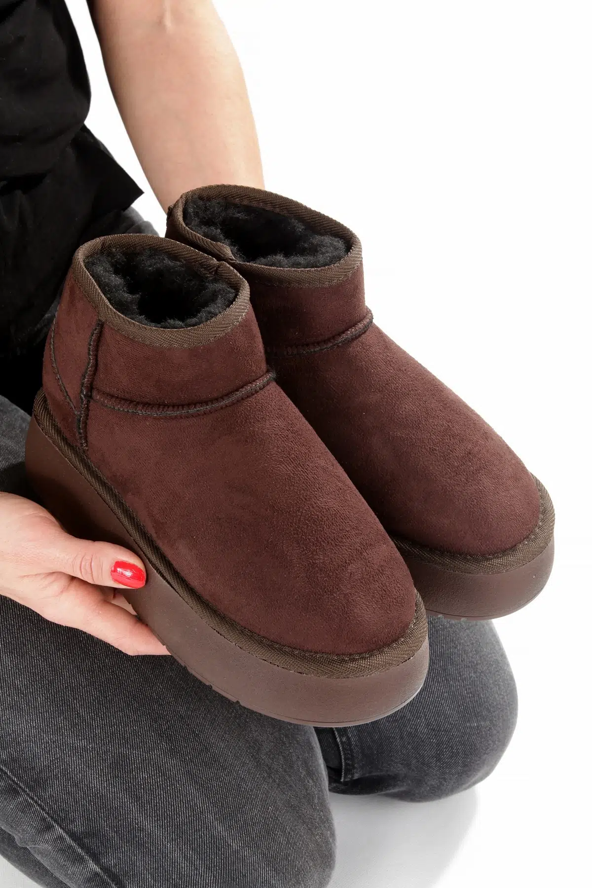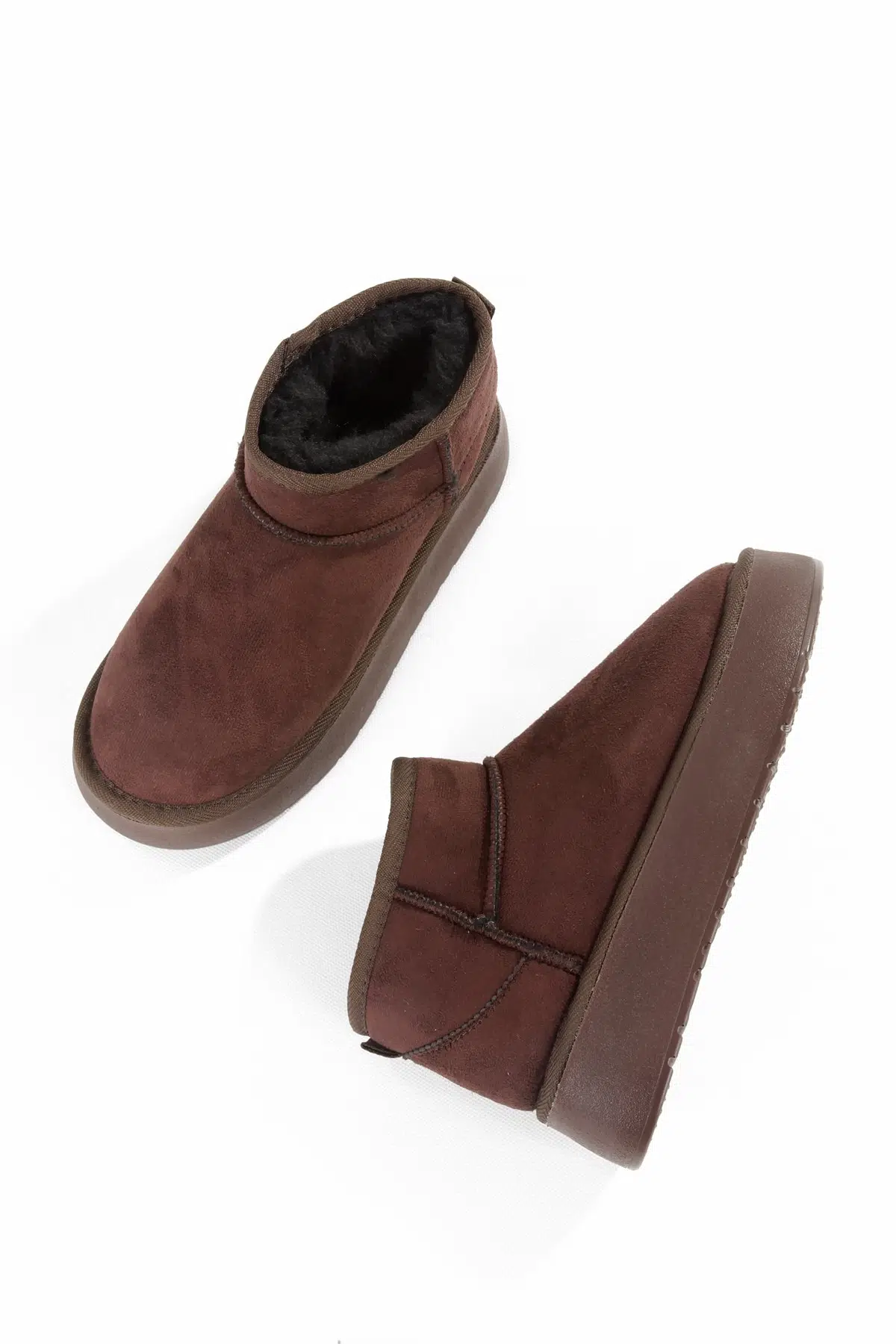 Kahve Süet Kalın Taban İçi Yünlü Kürklü Kadın Bot FON44