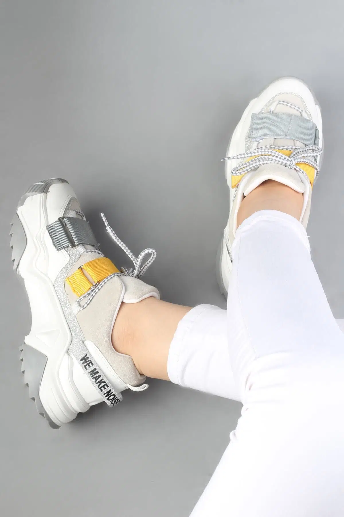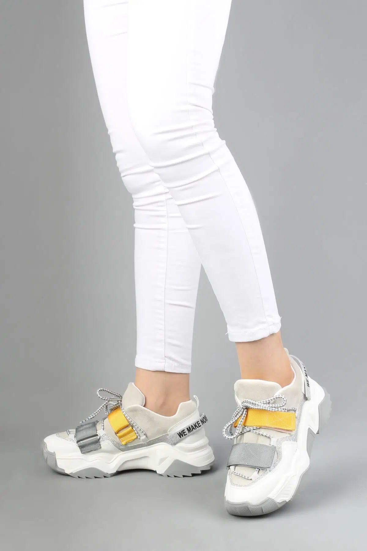 Kalın Tabanlı Gri Sneaker Cırtcırtlı Kadın Spor Ayakkabı - Campi