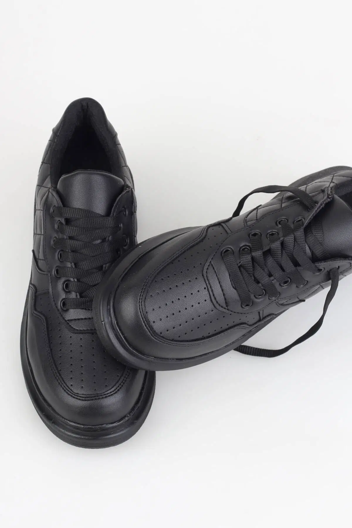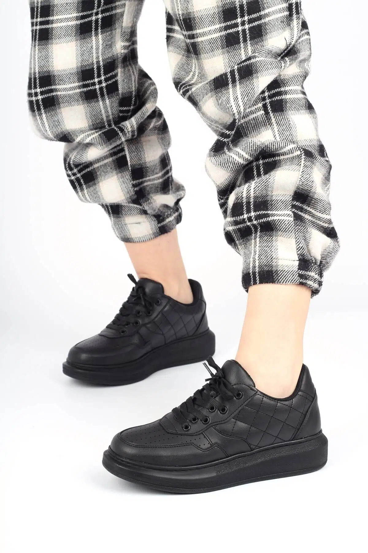 Kalın Tabanlı Siyah Sneaker Kapitone Kadın Spor Ayakkabı - Miel
