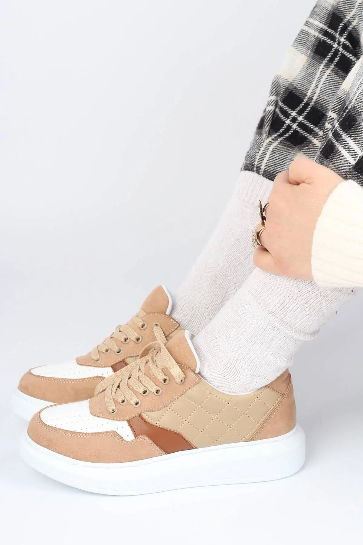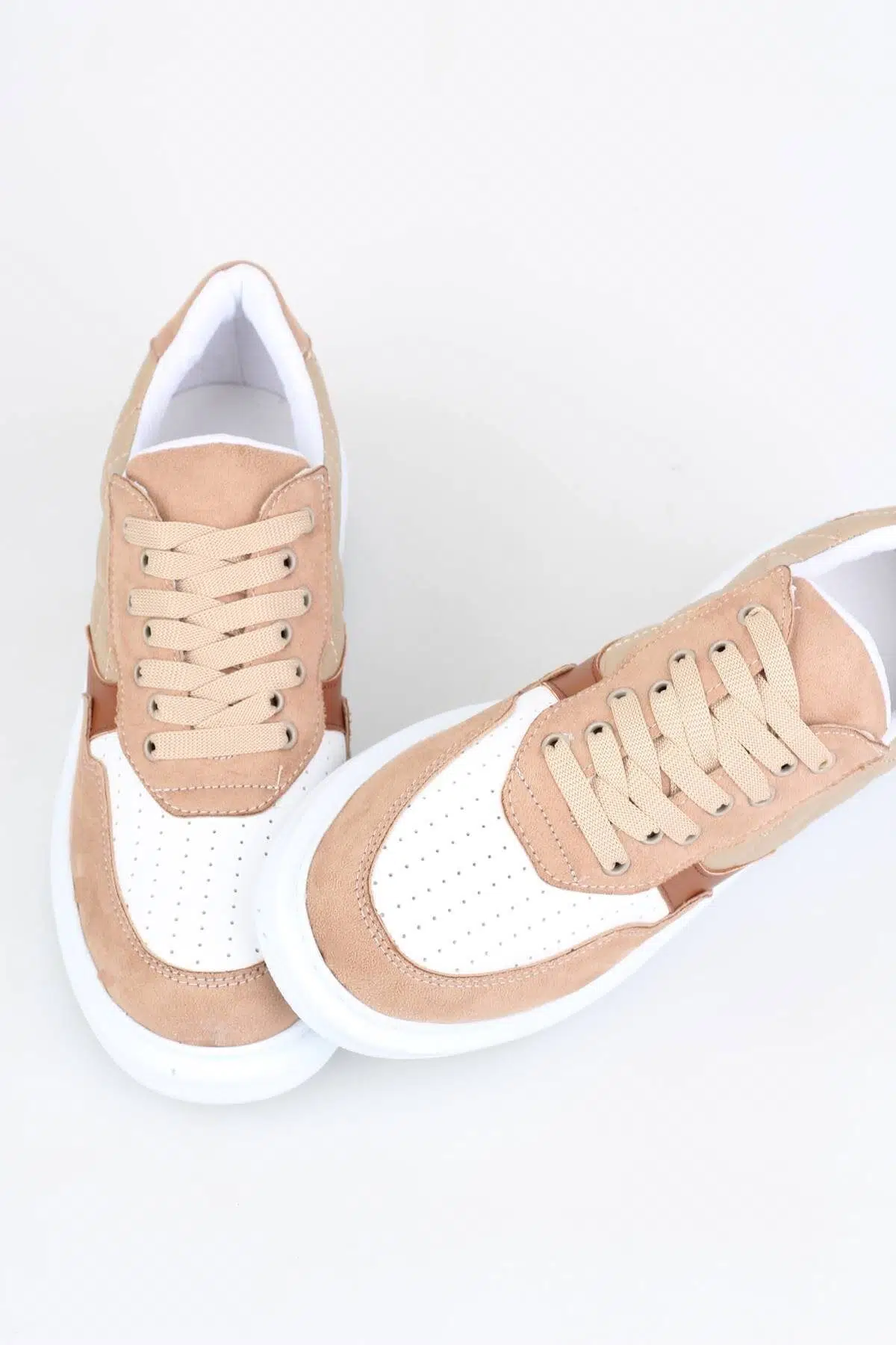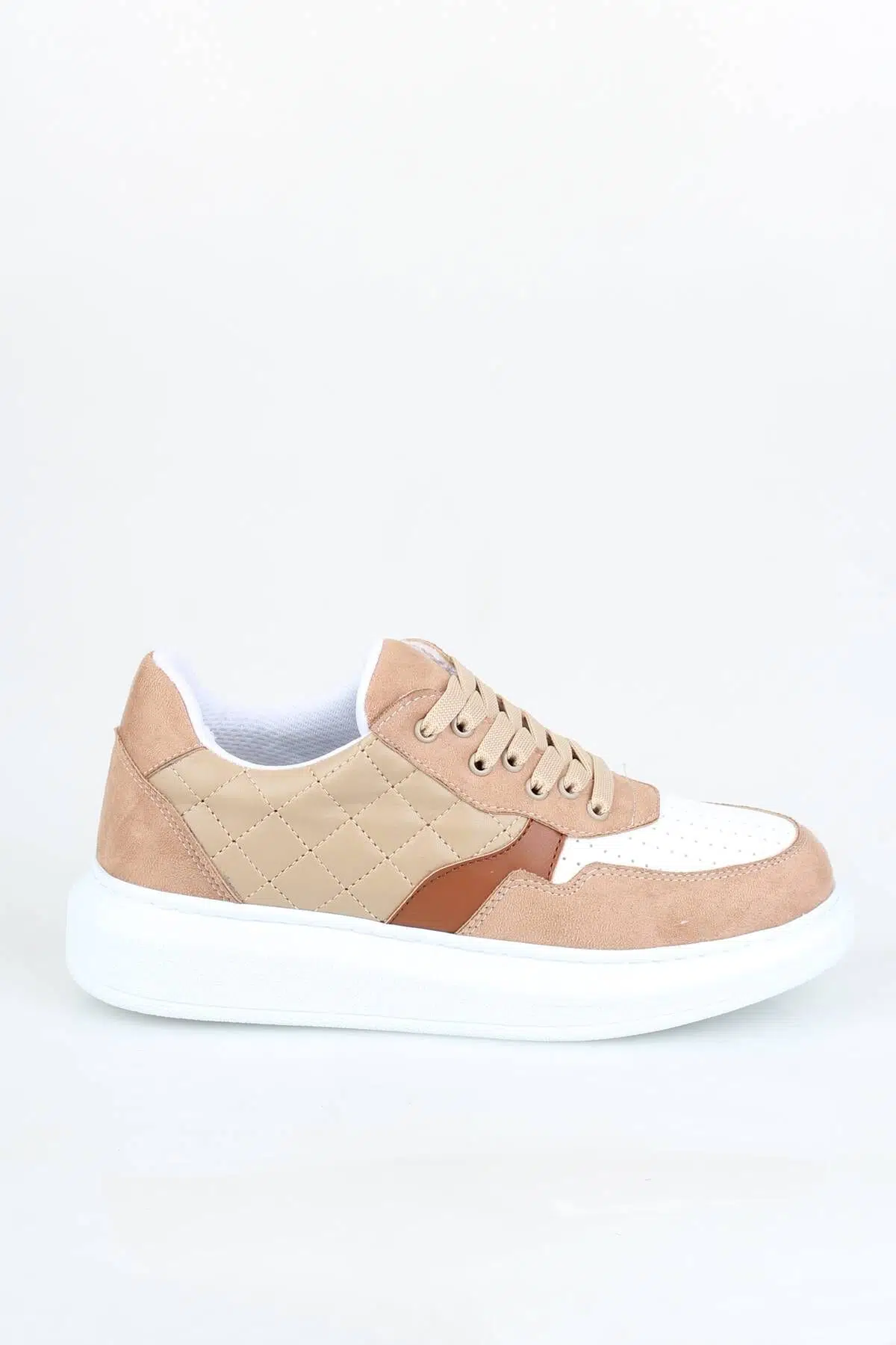 Spor ayakkabı ve çantalarda yükselen kapitone modelini bu sneakerimiz de de kullanmış ve ten süet ile renklendirmiş olduk.