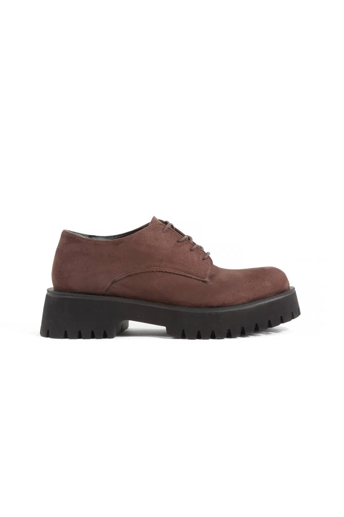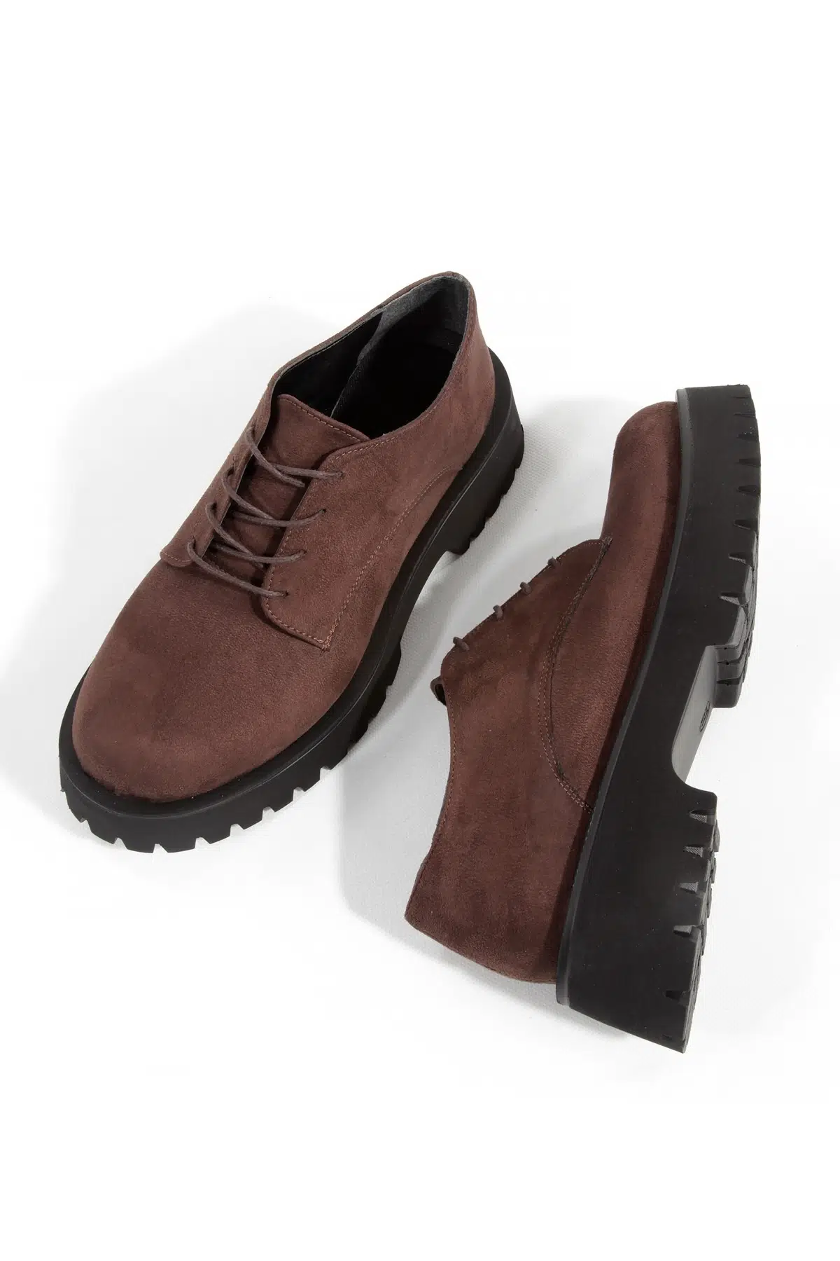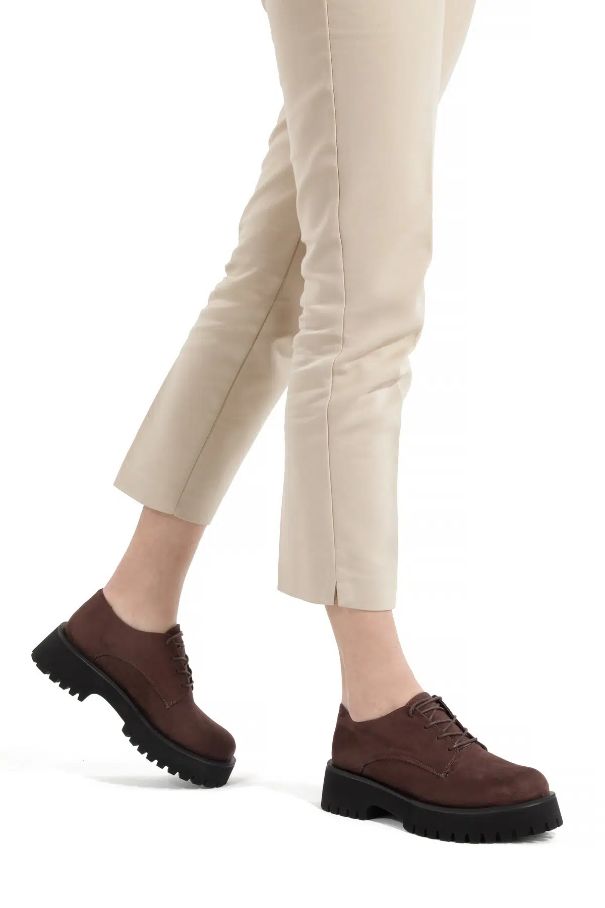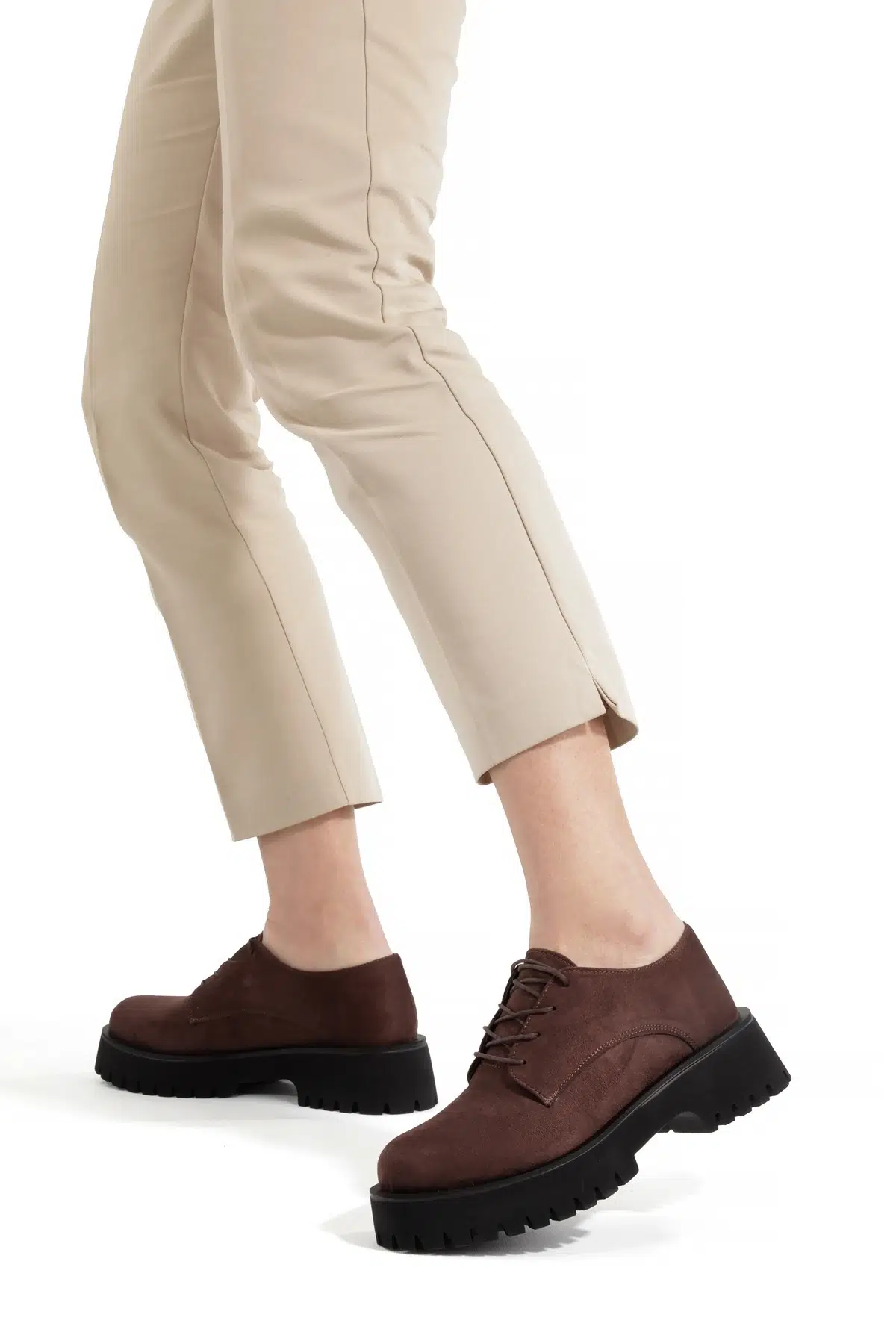 Koyu Kahve Rengi Süet Bağcıklı Ultra Hafif Oxford Kadın Ayakkabı Loetse