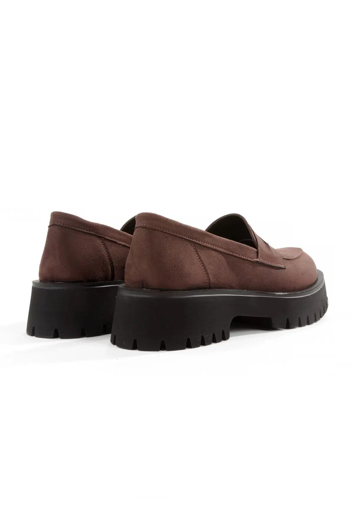 Koyu Kahve Rengi Süet Hafif Yumuşak Loafer Bağcıksız Kadın Ayakkabı DORA
