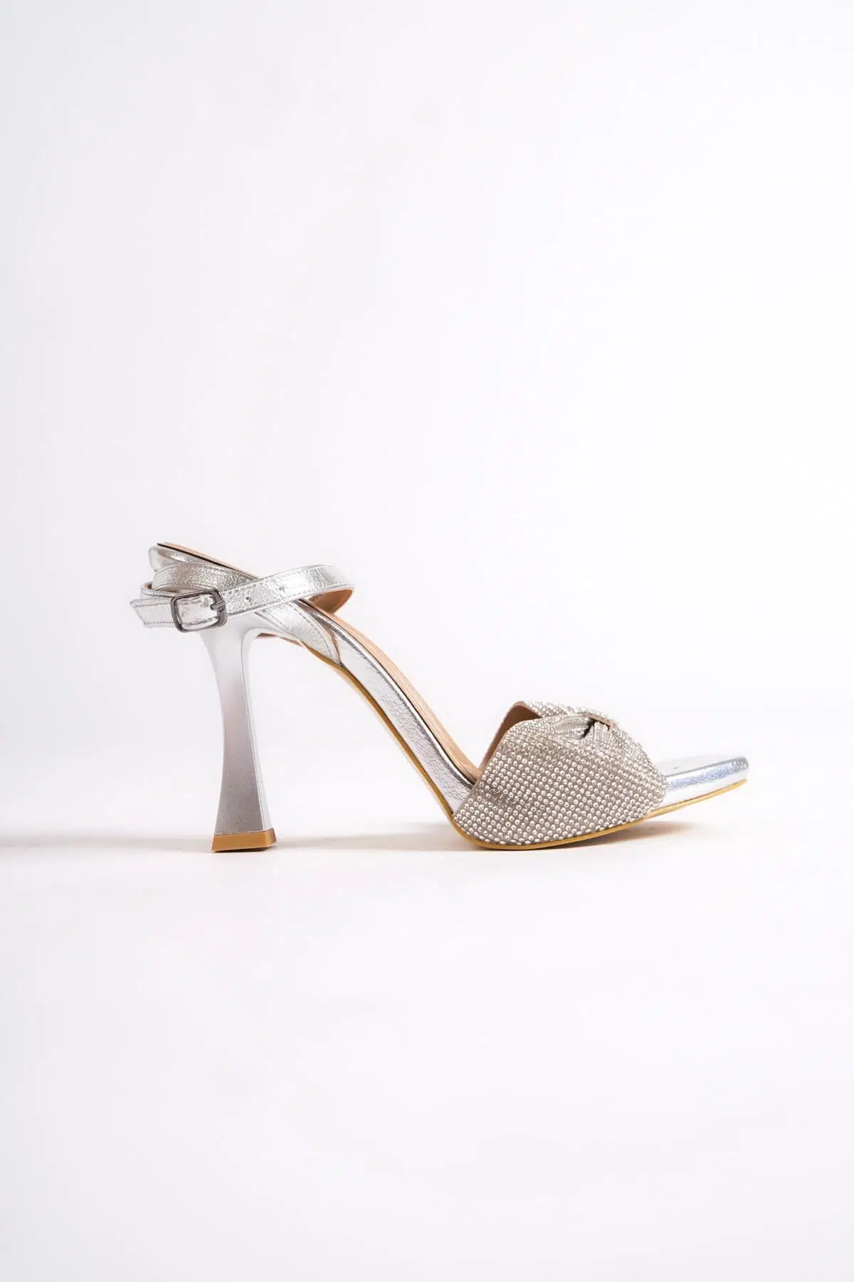 Nelson Gümüş Fiyonk Taşlı Platform Topuklu Abiye Ayakkabı