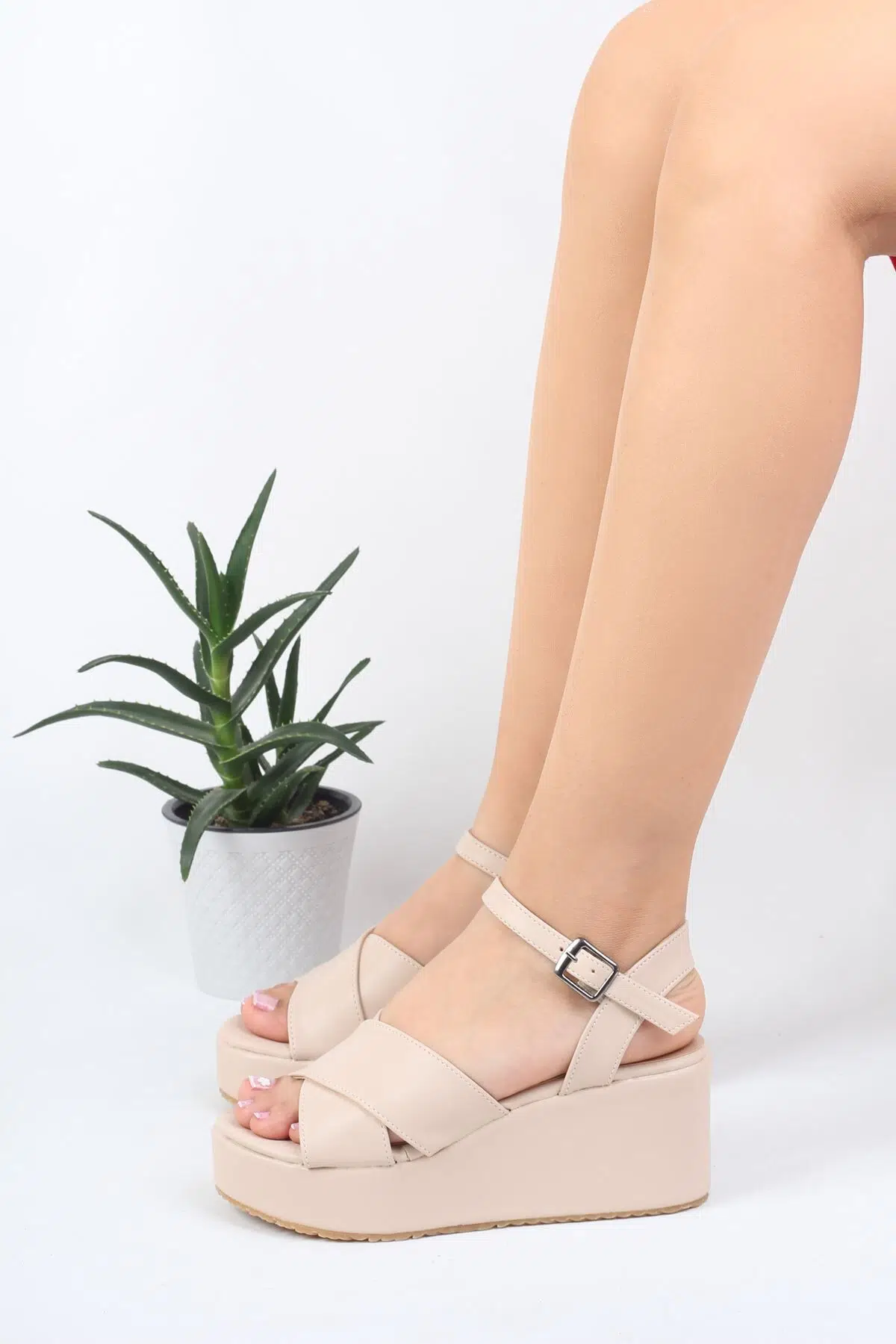 Platform Dolgu Topuklu Çapraz Bantlı Ten Kadın Sandalet - Yummy Özellikleri