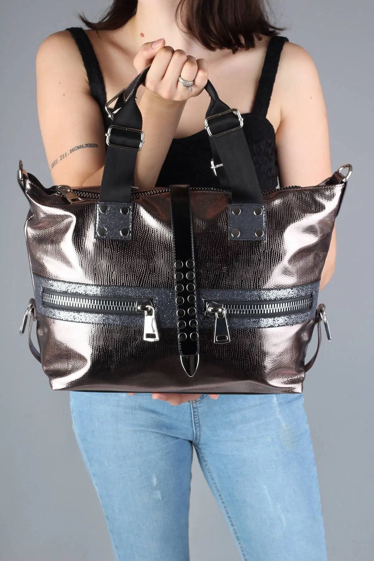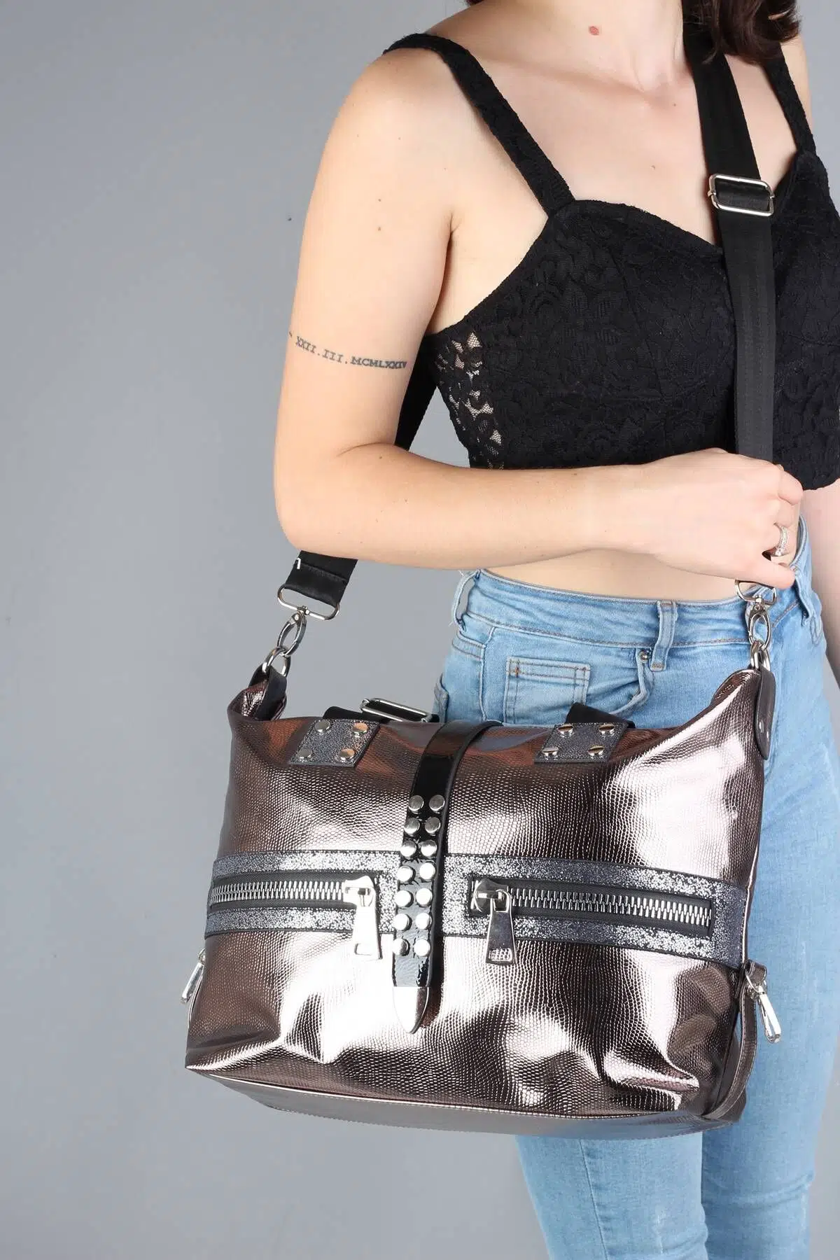 Platin Gri Taşlı Omuz Askılı Şık Kadın Çanta - Magazin