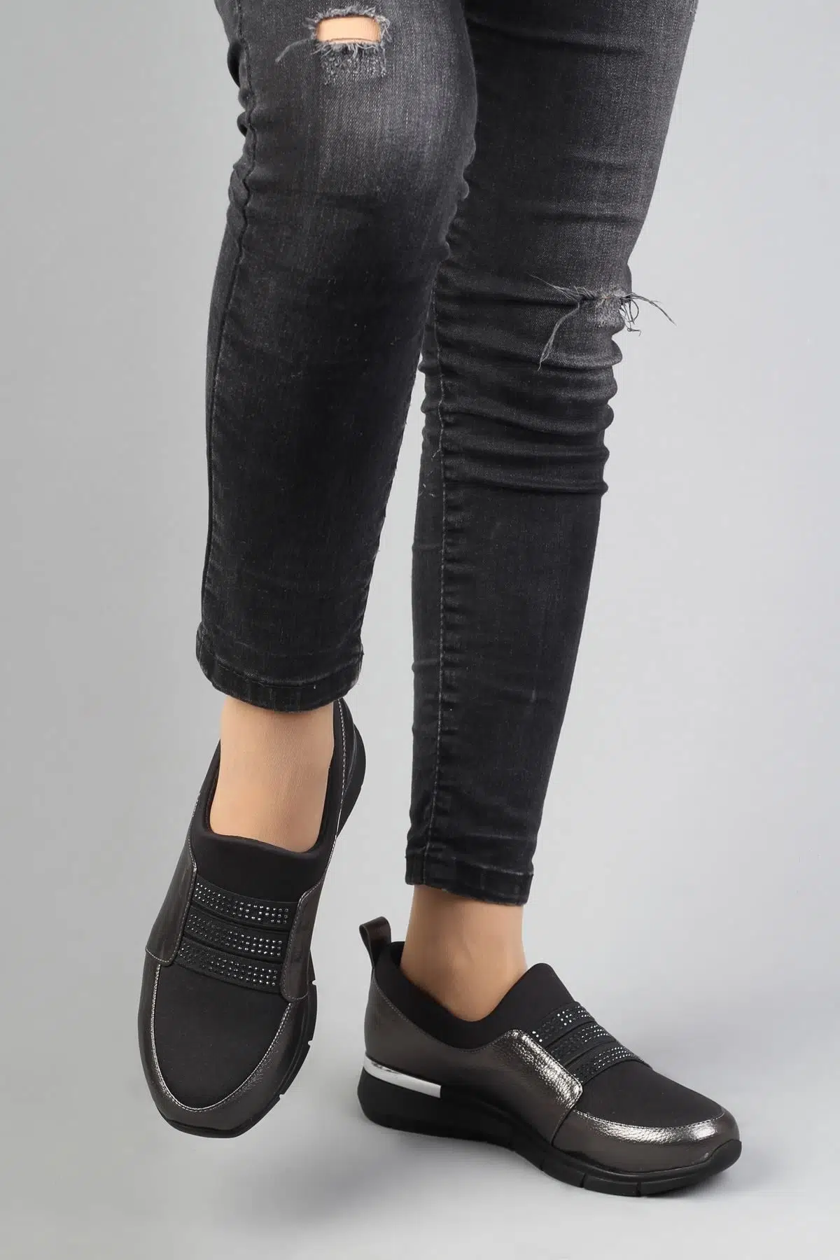3cm dolgulu tabanı çok hafiftir. Minik taşları ayakkabıyı spor şık hale getiriyor.