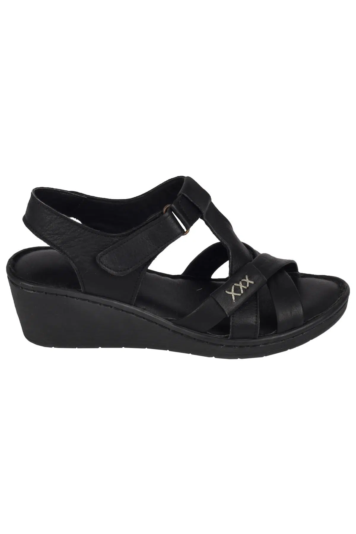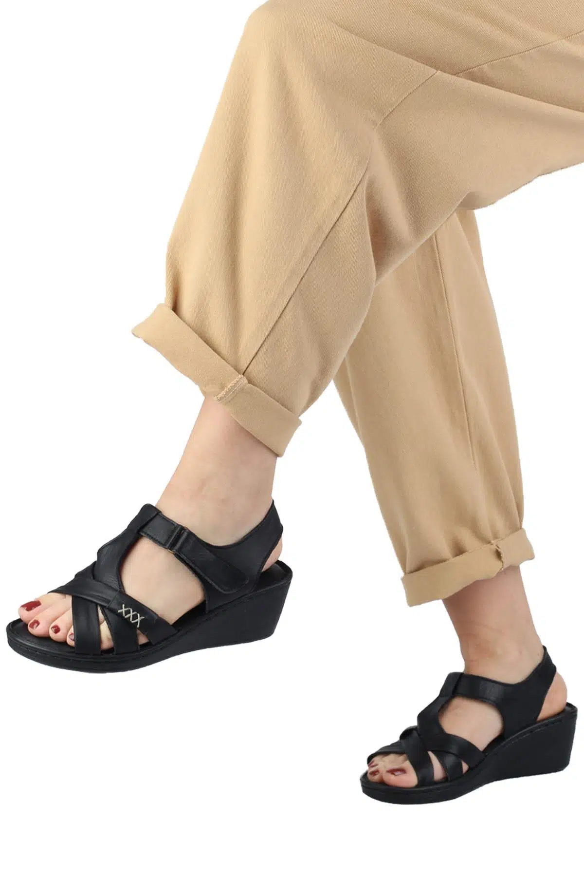 Siyah Hakiki Deri Dolgu Taban Anatomik Cırtlı Sandalet - Aliya Özellikleri