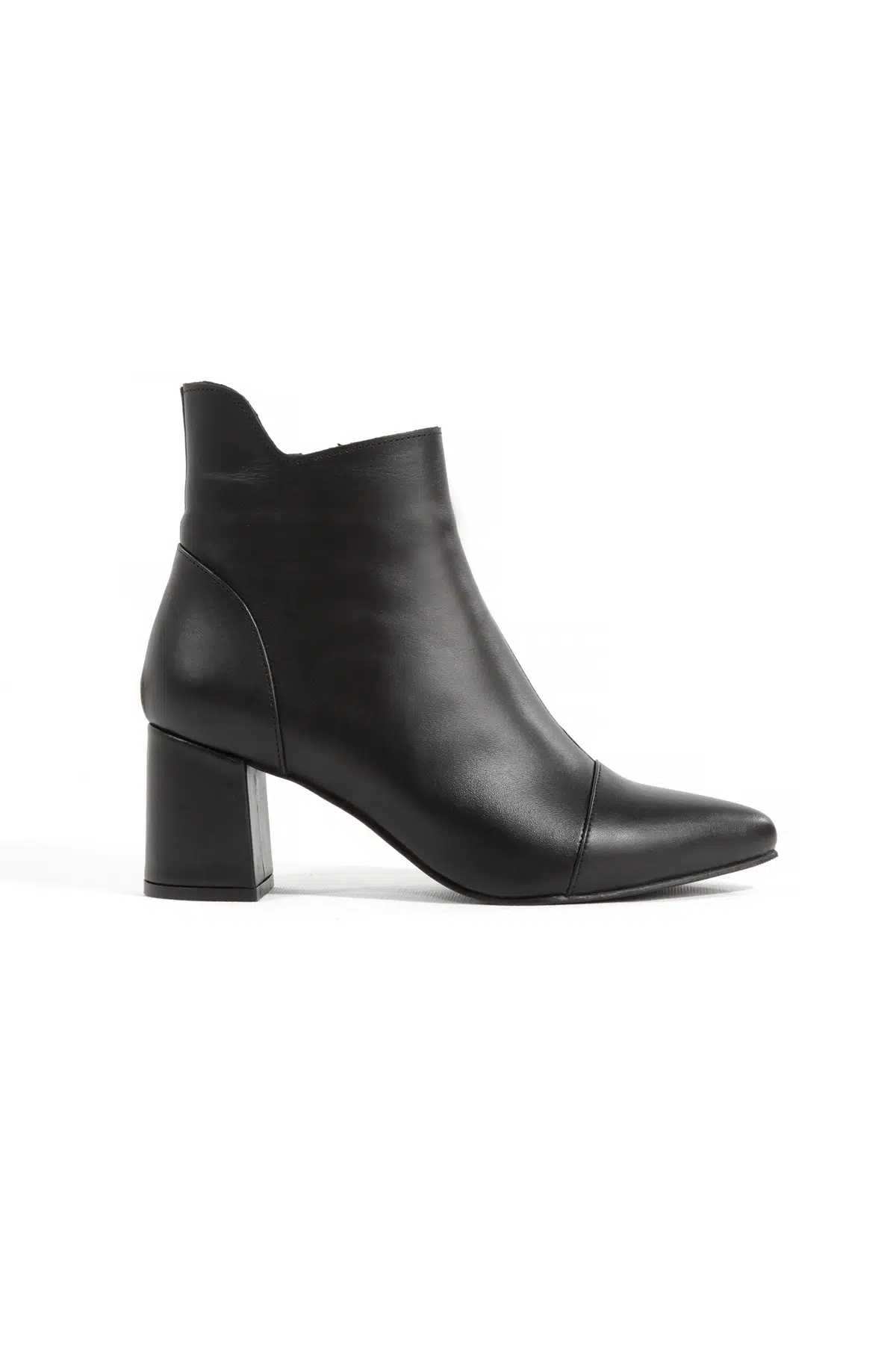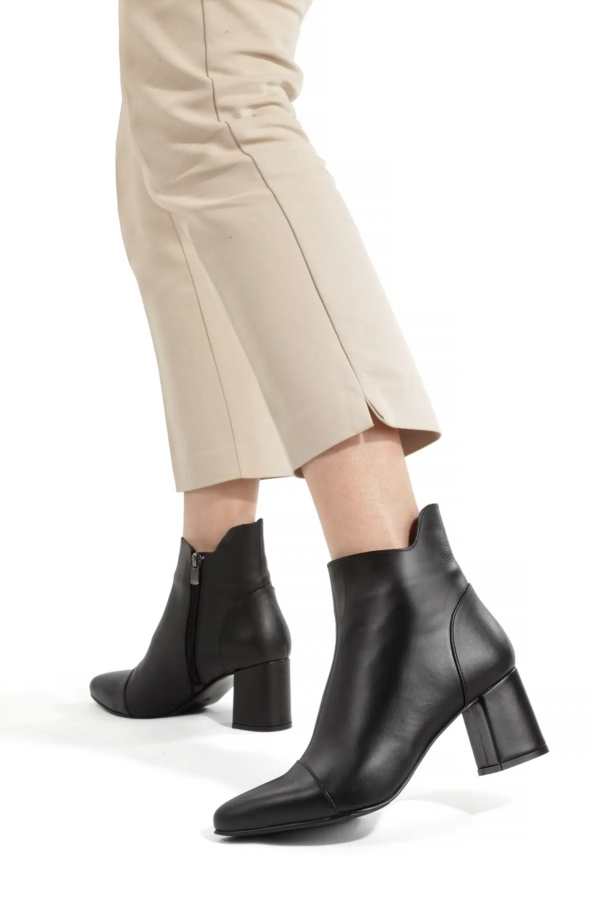 Siyah Hakiki Deri Topuklu Kadın Bot Daylan