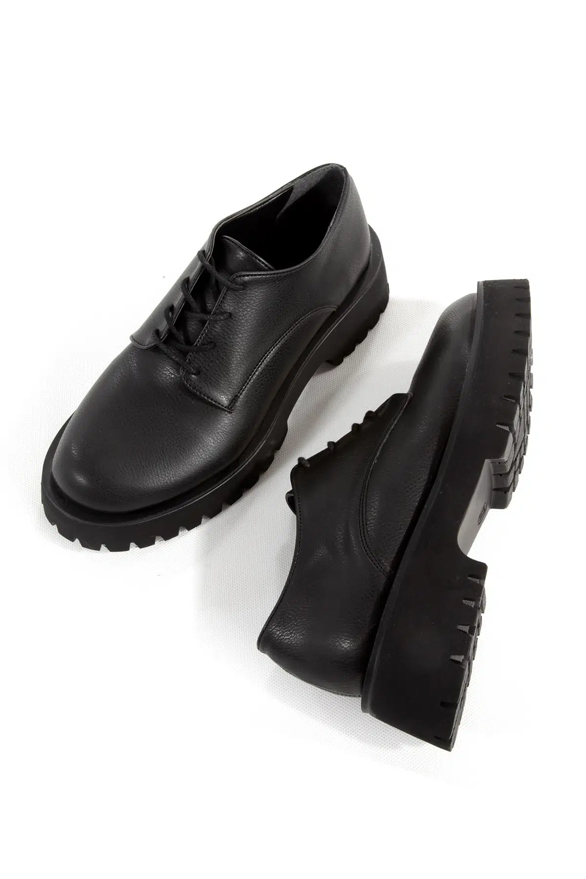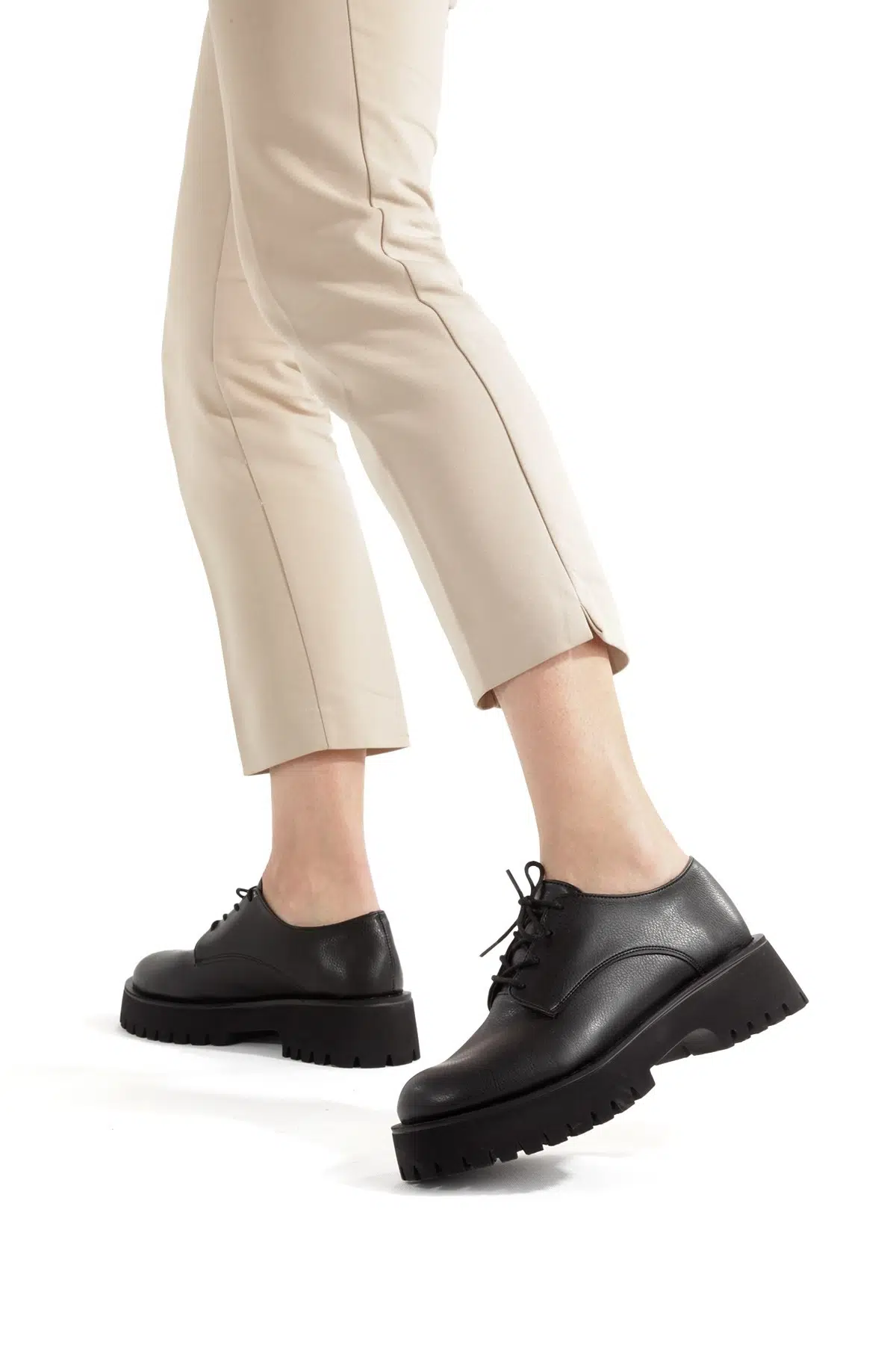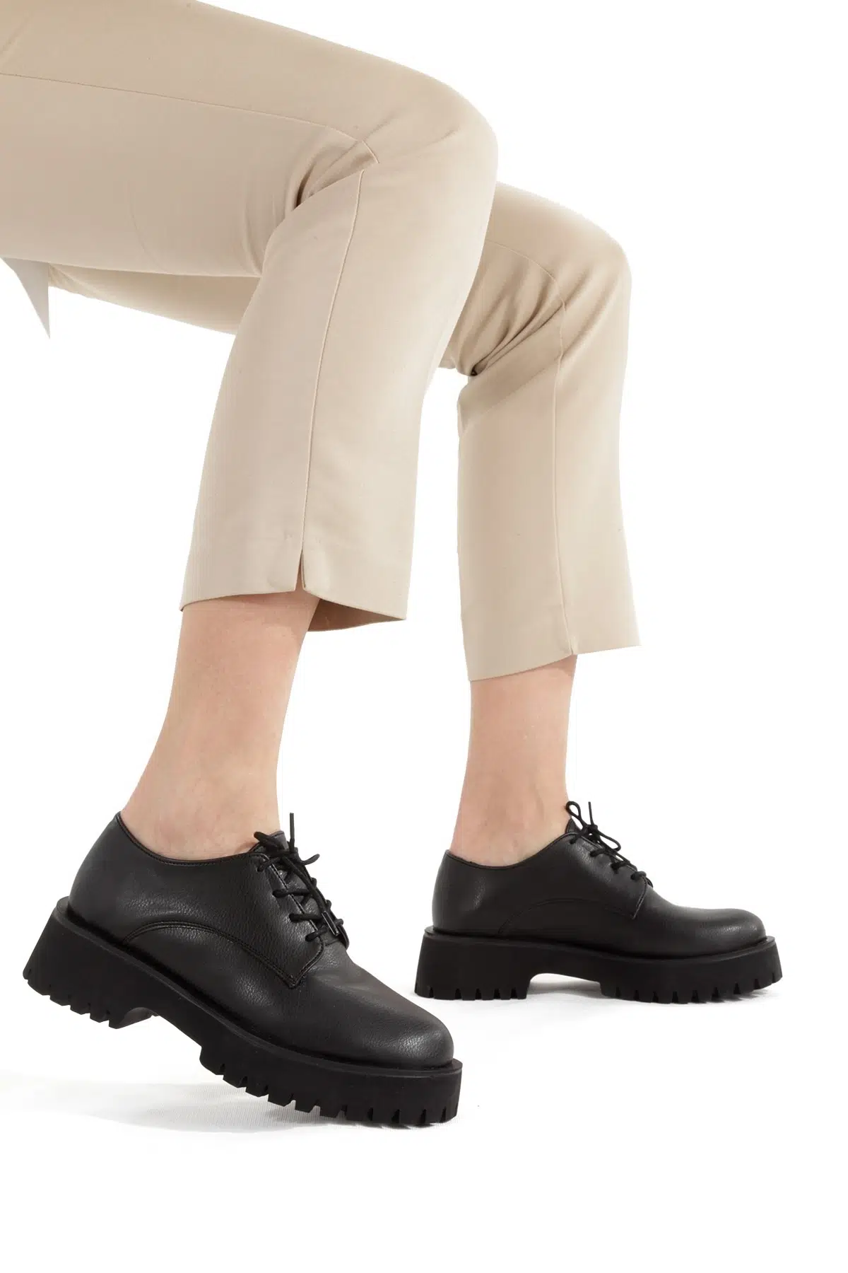 Siyah Mat Bağcıklı Hafif Kalın Tabanlı Oxford Kadın Ayakkabı Loetse