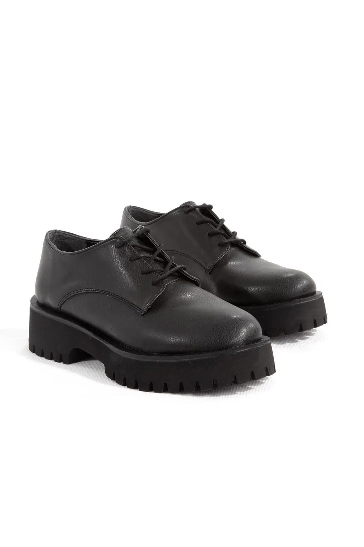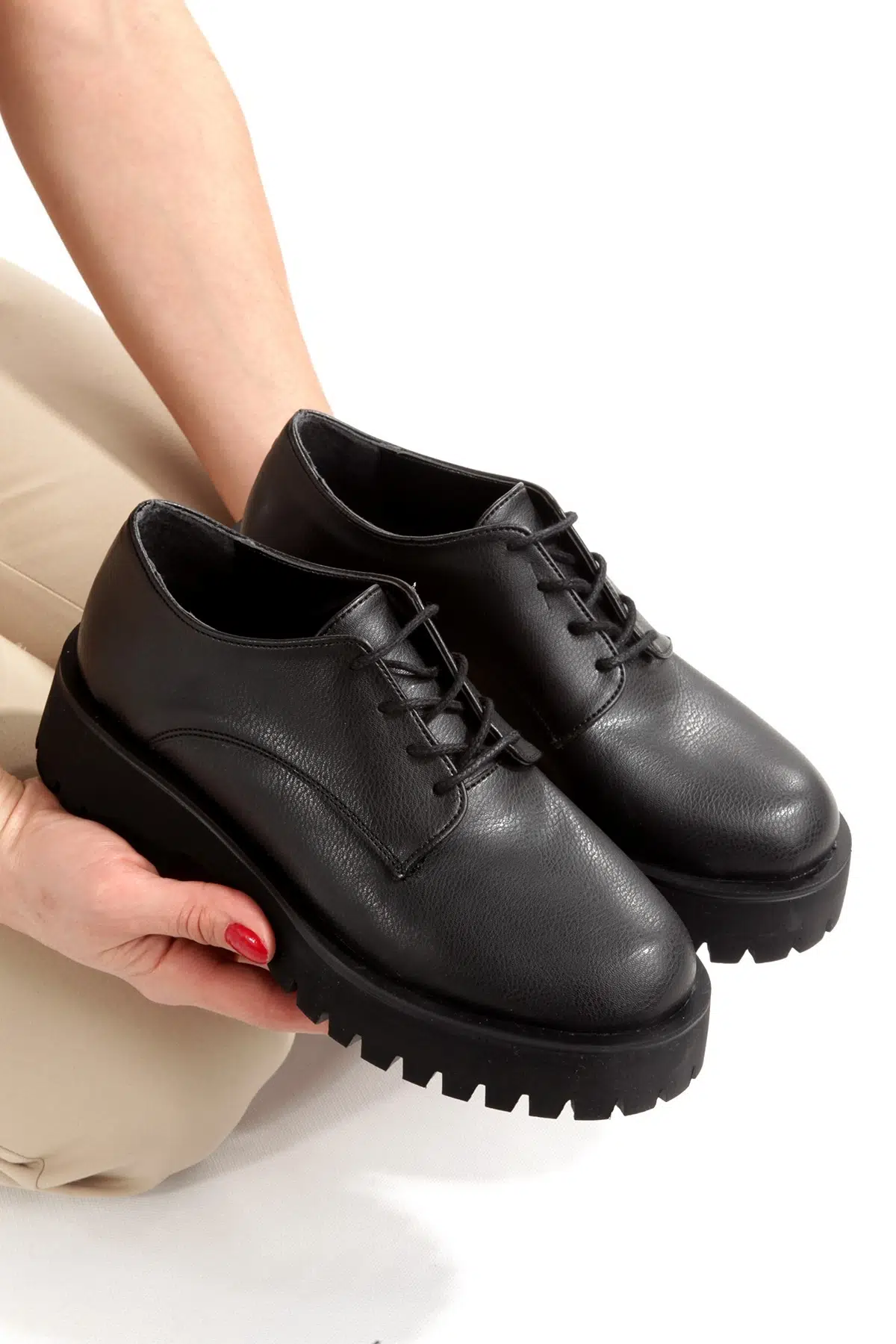 Siyah Mat Bağcıklı Hafif Kalın Tabanlı Oxford Kadın...