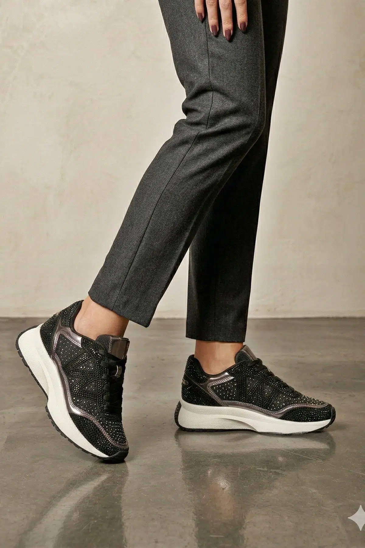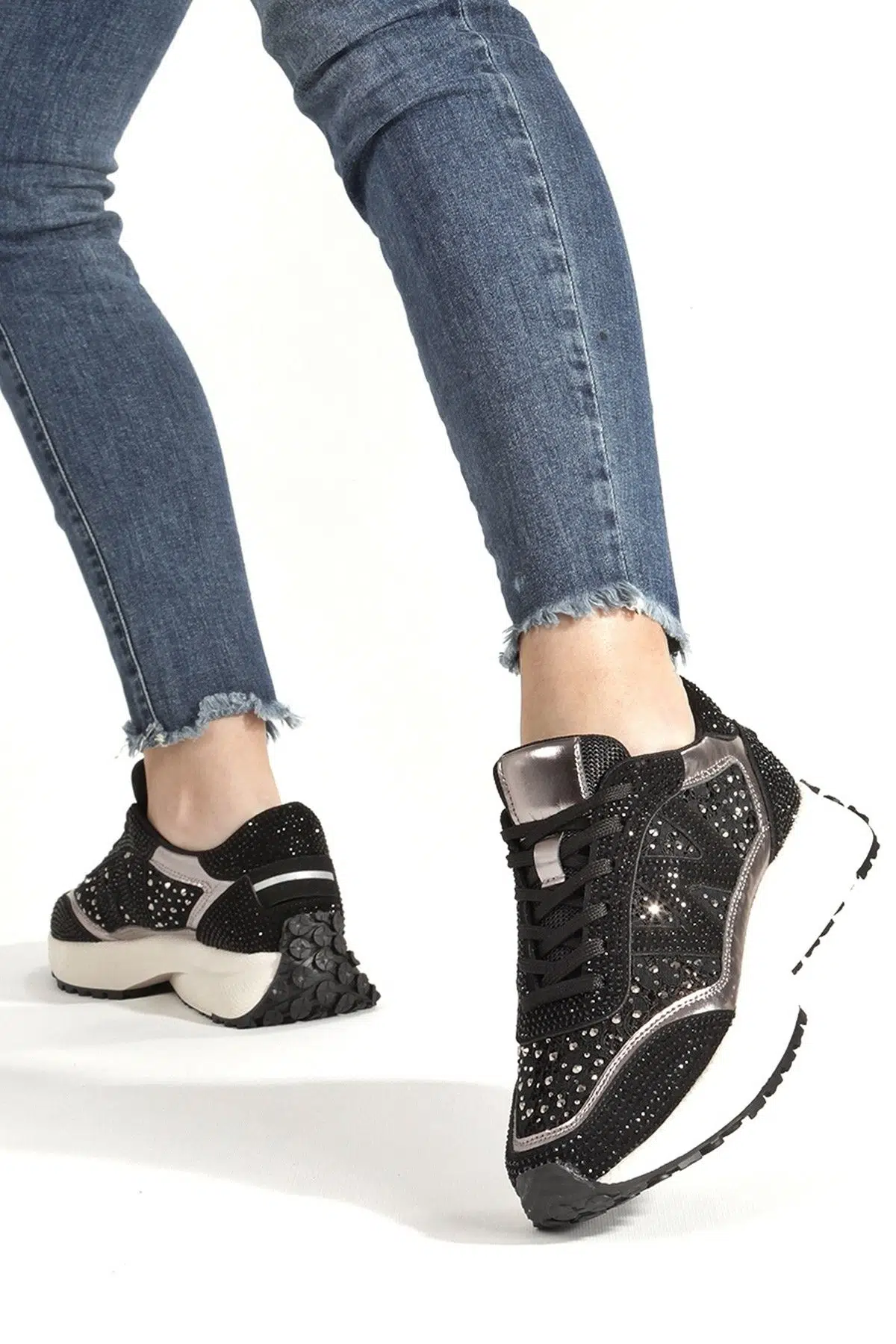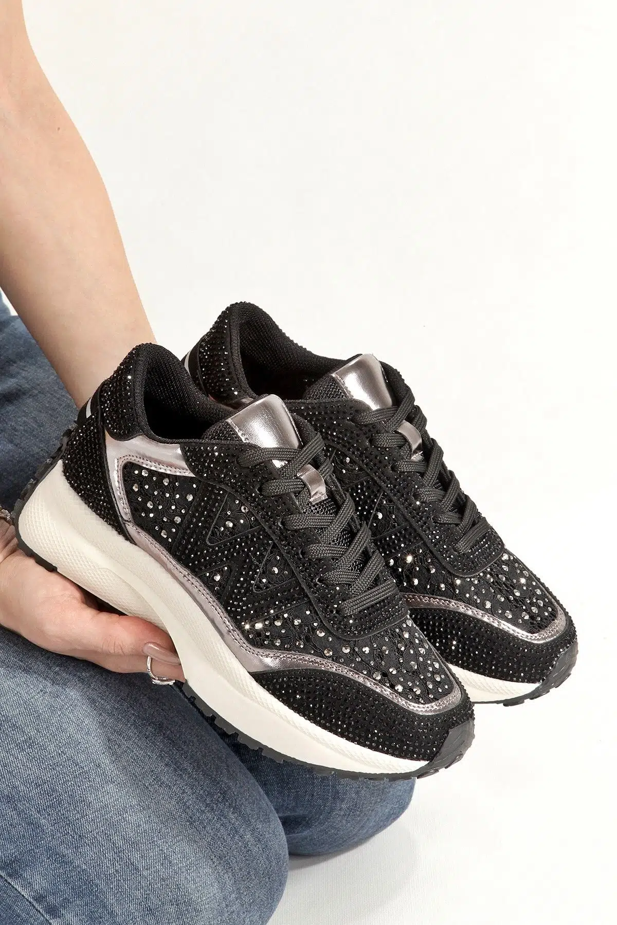 | Etiketler | Siyah Platin Renk Taşlı Rahat Sneaker Günlük Spor Ayakkabı Todow |