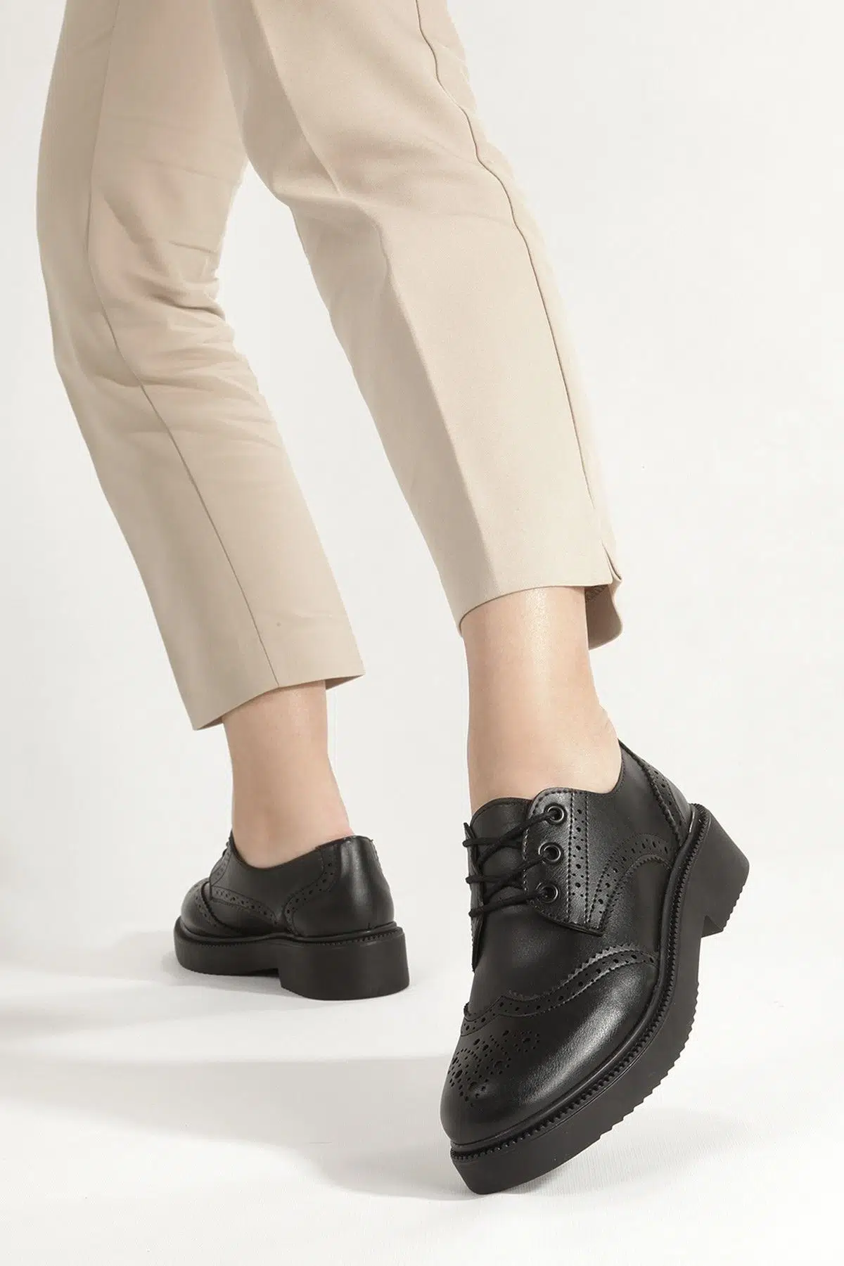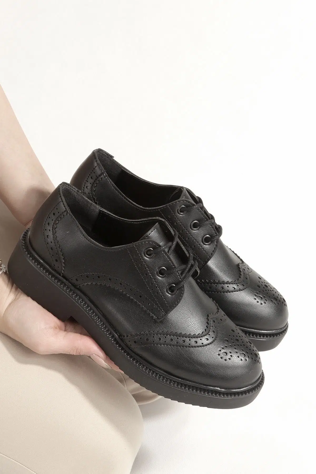 | Etiketler | Siyah Renk Kadın Bağcıklı Maskülen Günlük Oxford Ayakkabı Yampa |