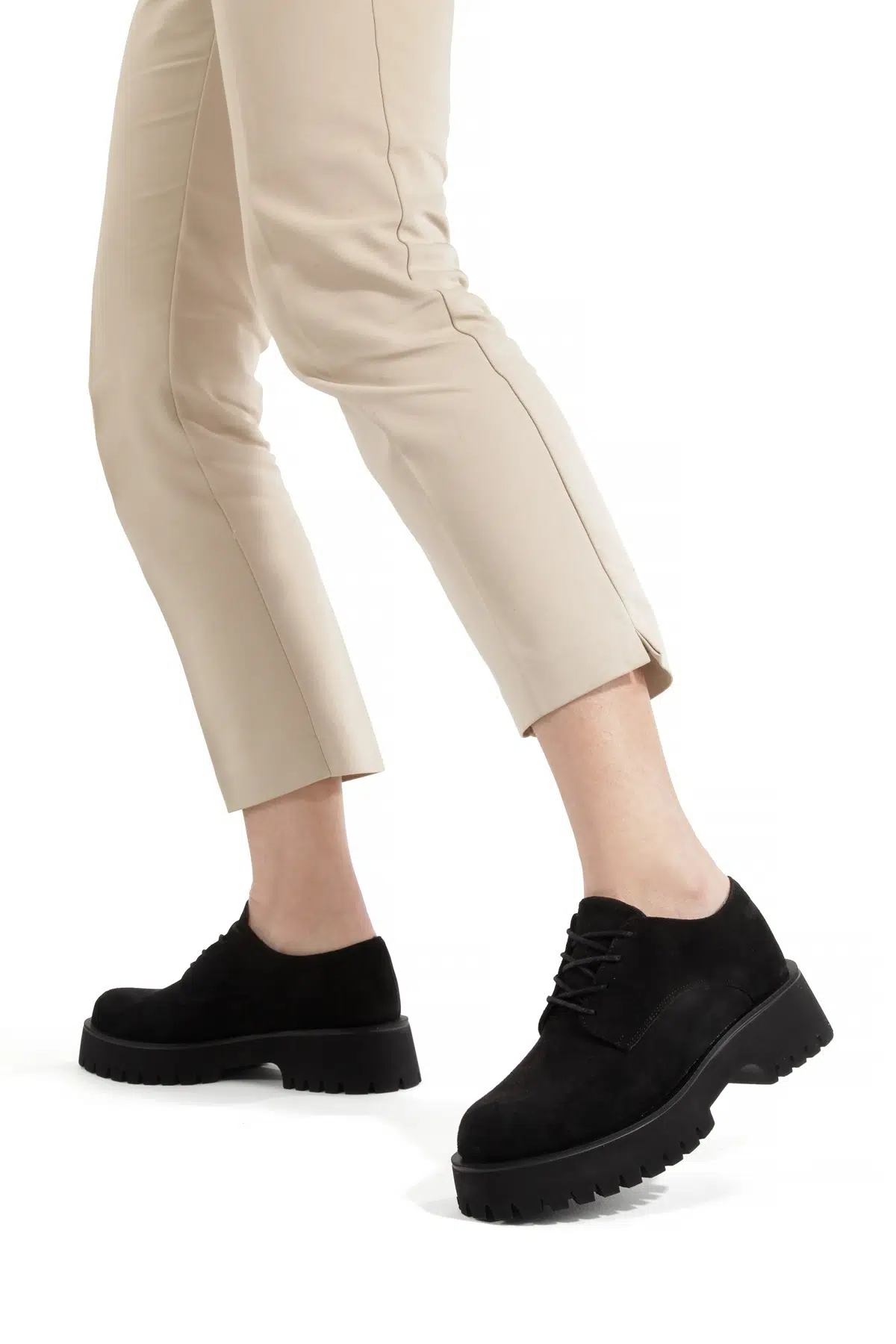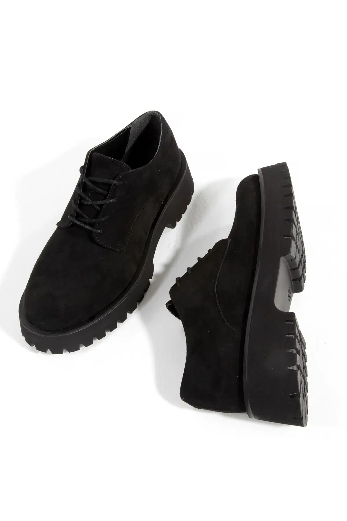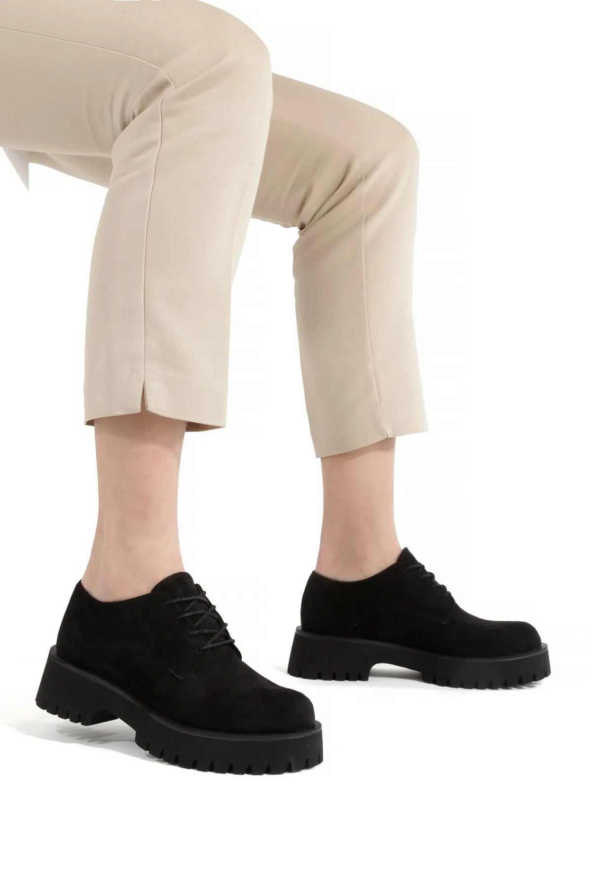 Siyah Süet Bağcıklı Ultra Hafif Oxford Kadın Ayakkabı Loetse