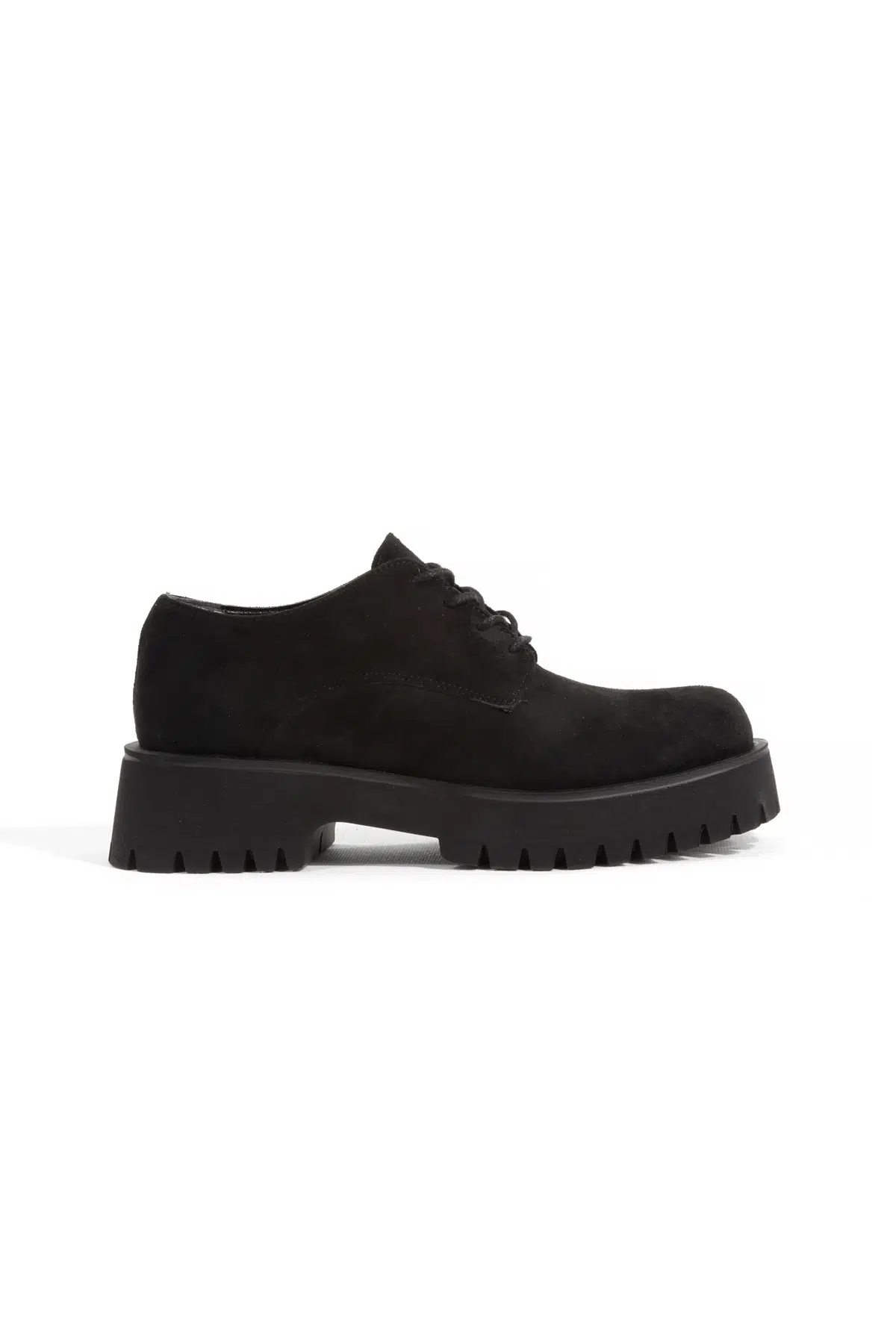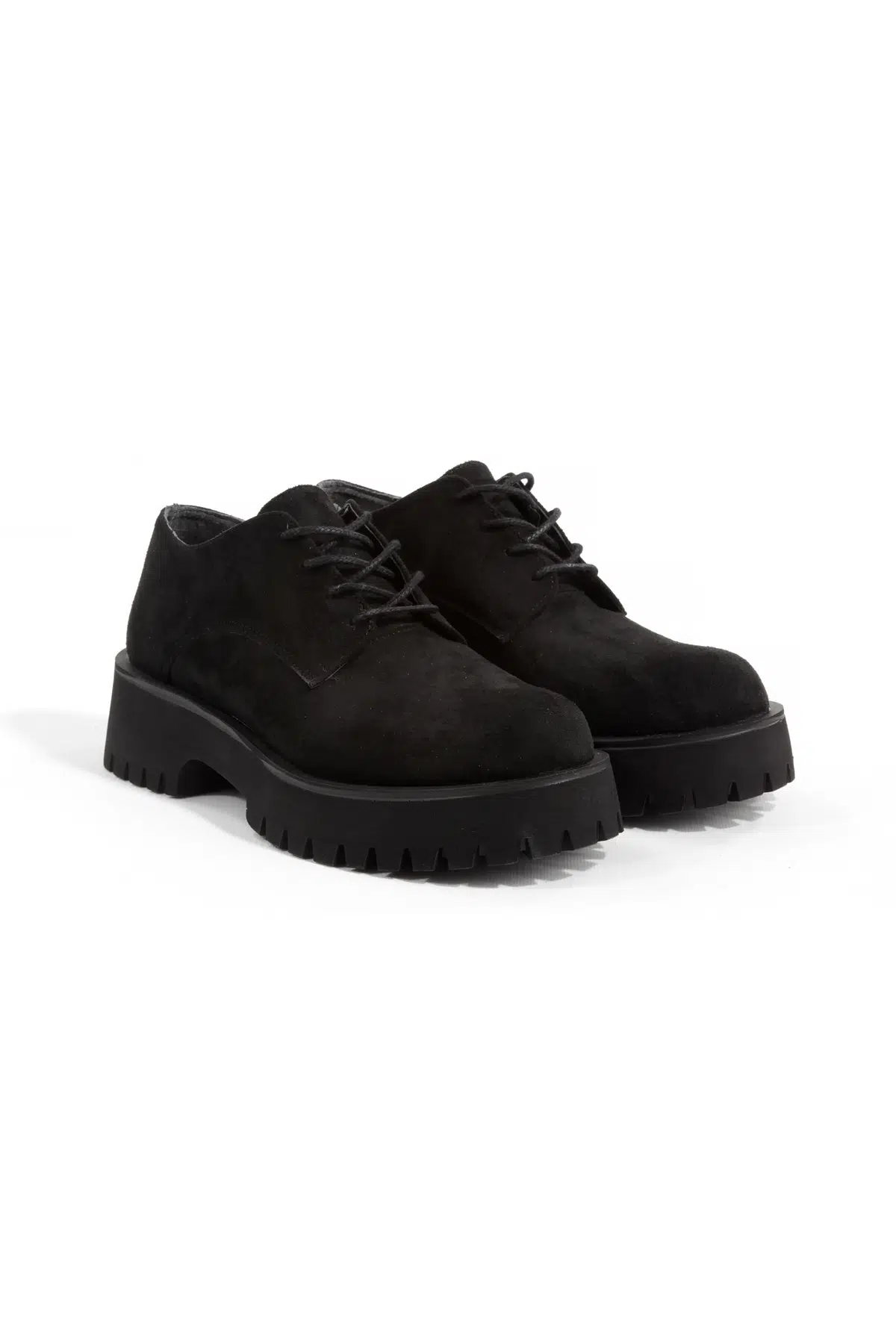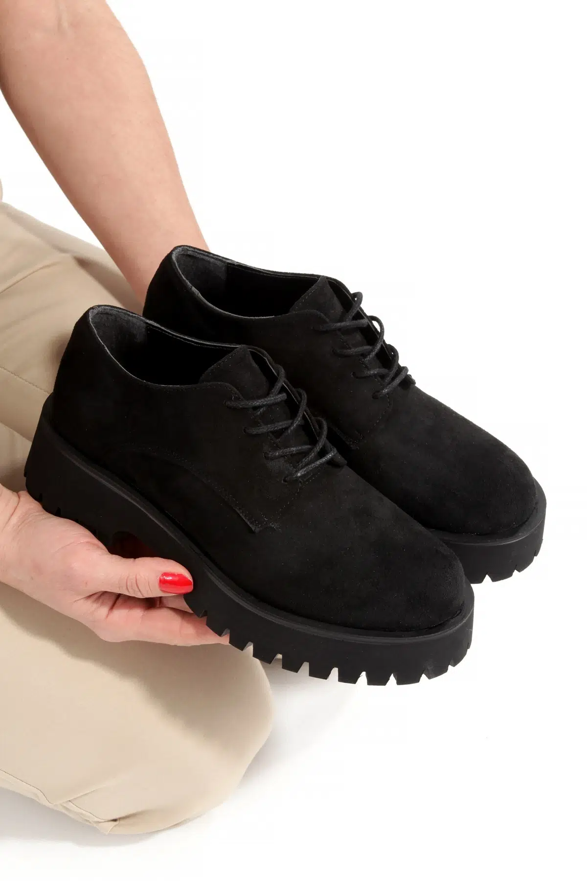 Siyah Süet Bağcıklı Ultra Hafif Oxford Kadın Ayakkabı Loetse