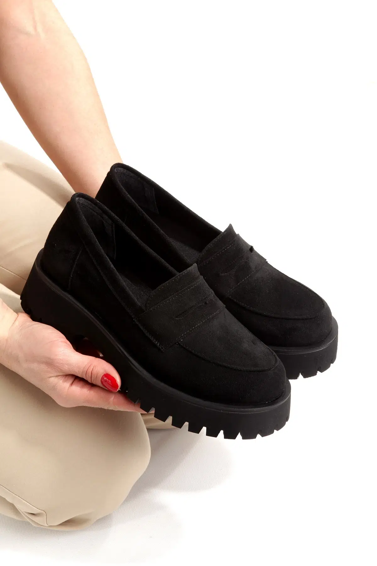 Siyah Süet Hafif Yumuşak Loafer Bağcıksız Kadın Ayakkabı DORA Özellikleri