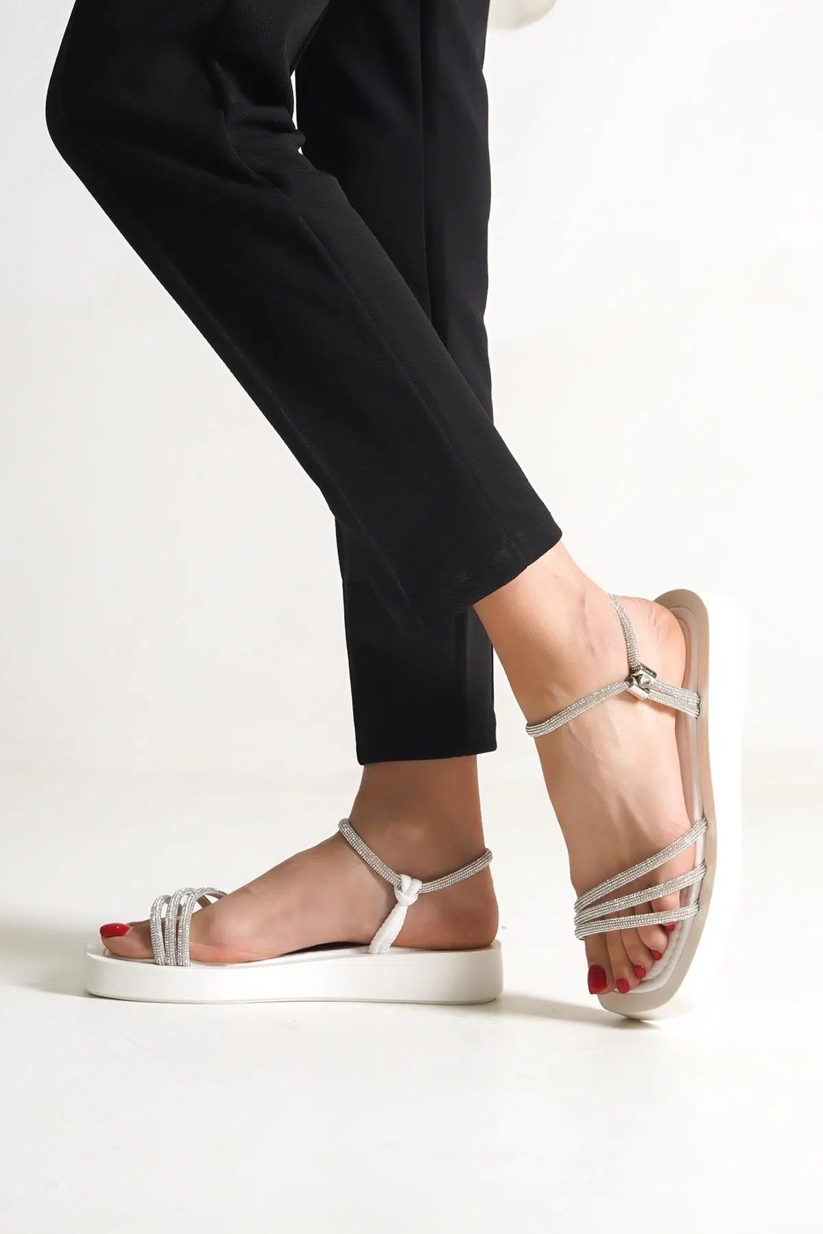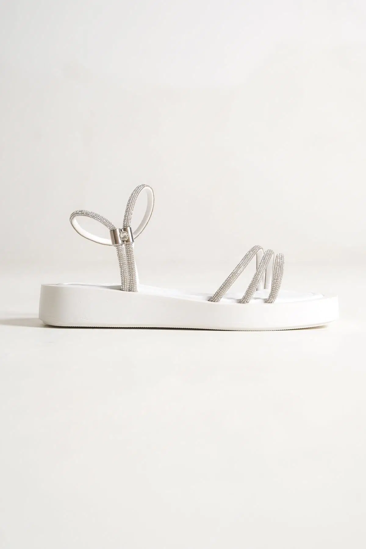 Smart Beyaz Taşlı Topuksuz Abiye Sandalet Özellikleri