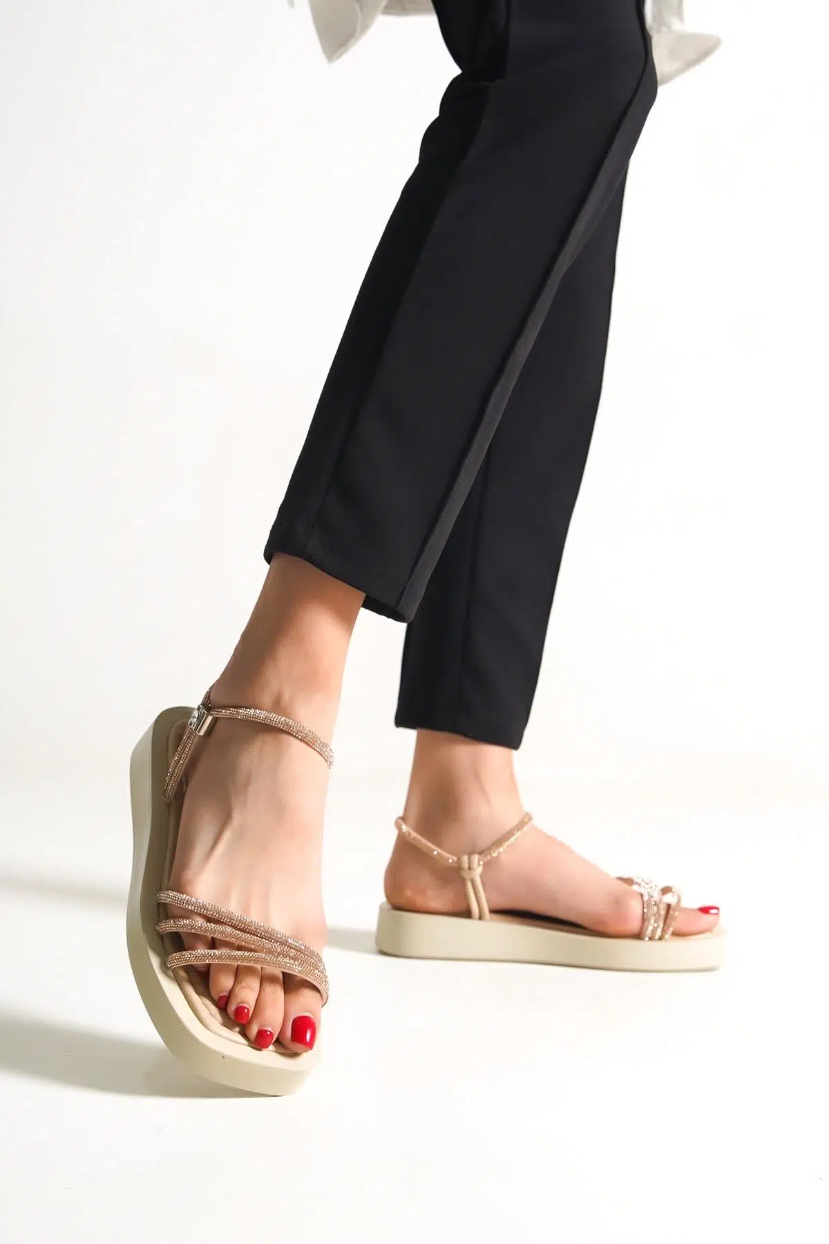 Smart Ten Rengi Taşlı Topuksuz Abiye Sandalet Özellikleri