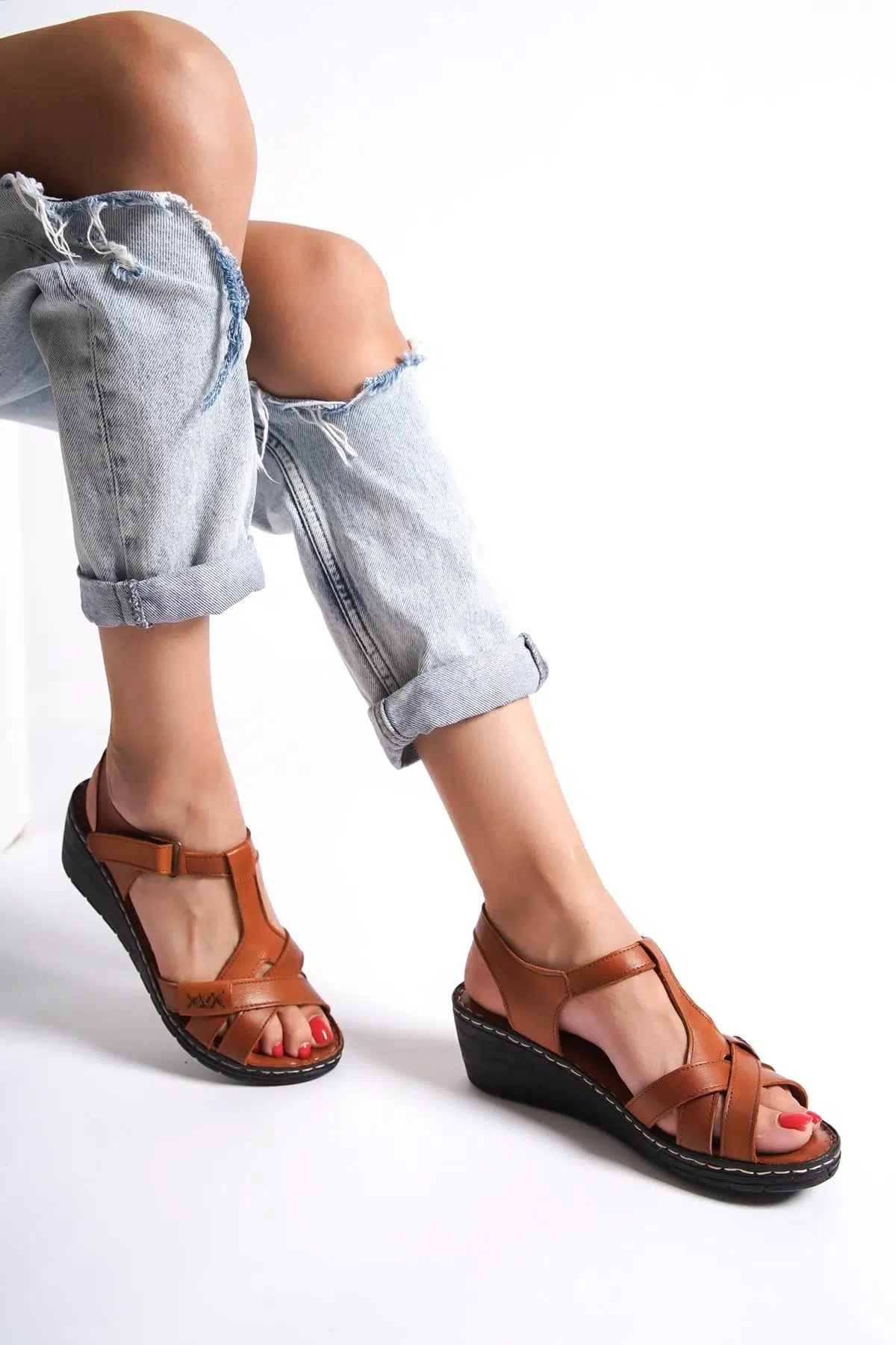 Taba Hakiki Deri Dolgu Taban Anatomik Cırtlı Sandalet - Aliya Özellikleri