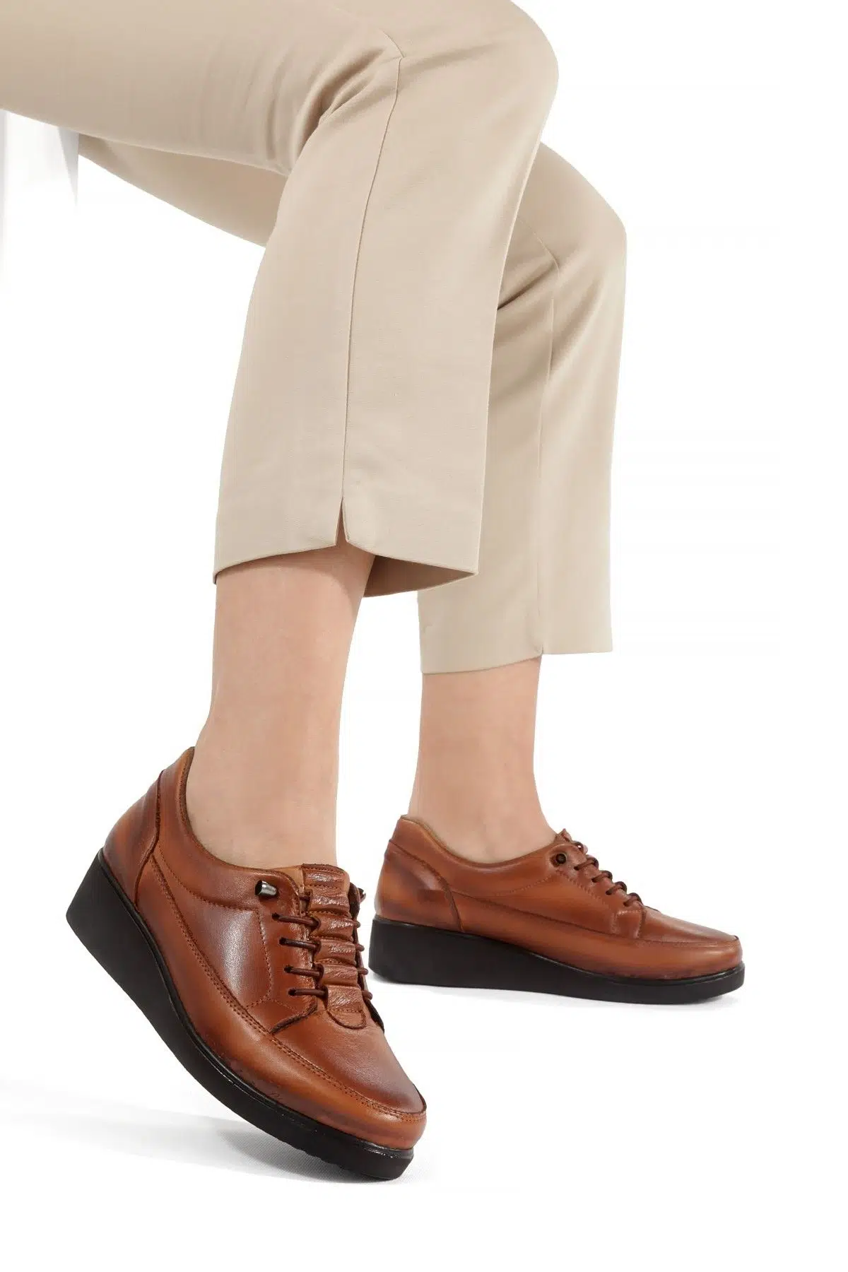 Taba Renk Hakiki Deri Anatomik Lastik Bağcıklı Günlük Hafif Kadın Ayakkabı Maan Özellikleri