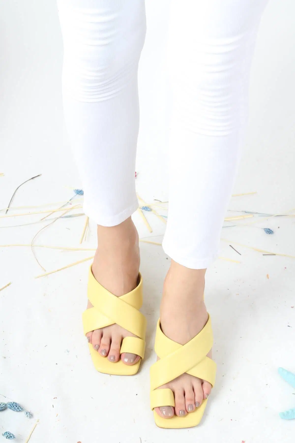 Tek Parmak Kısa Topuklu Sarı Kadın Terlik - Julia Özellikleri