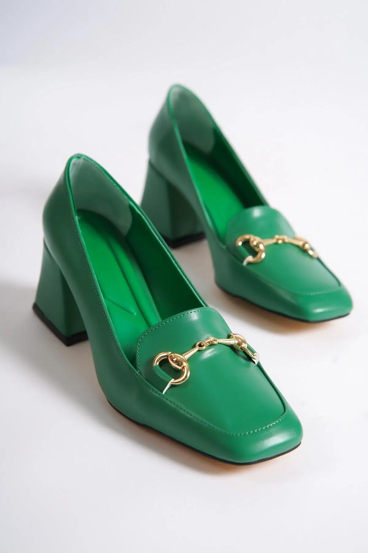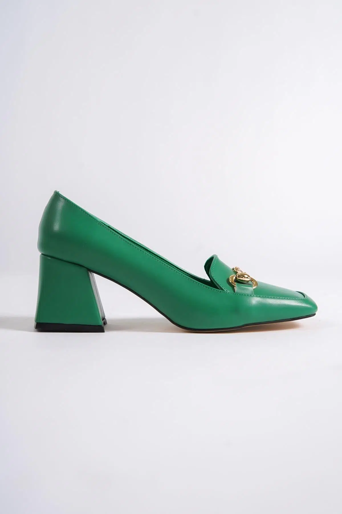 Verona Yeşil Küt Burun Kalın Topuklu Tokalı Ayakkabı Özellikleri