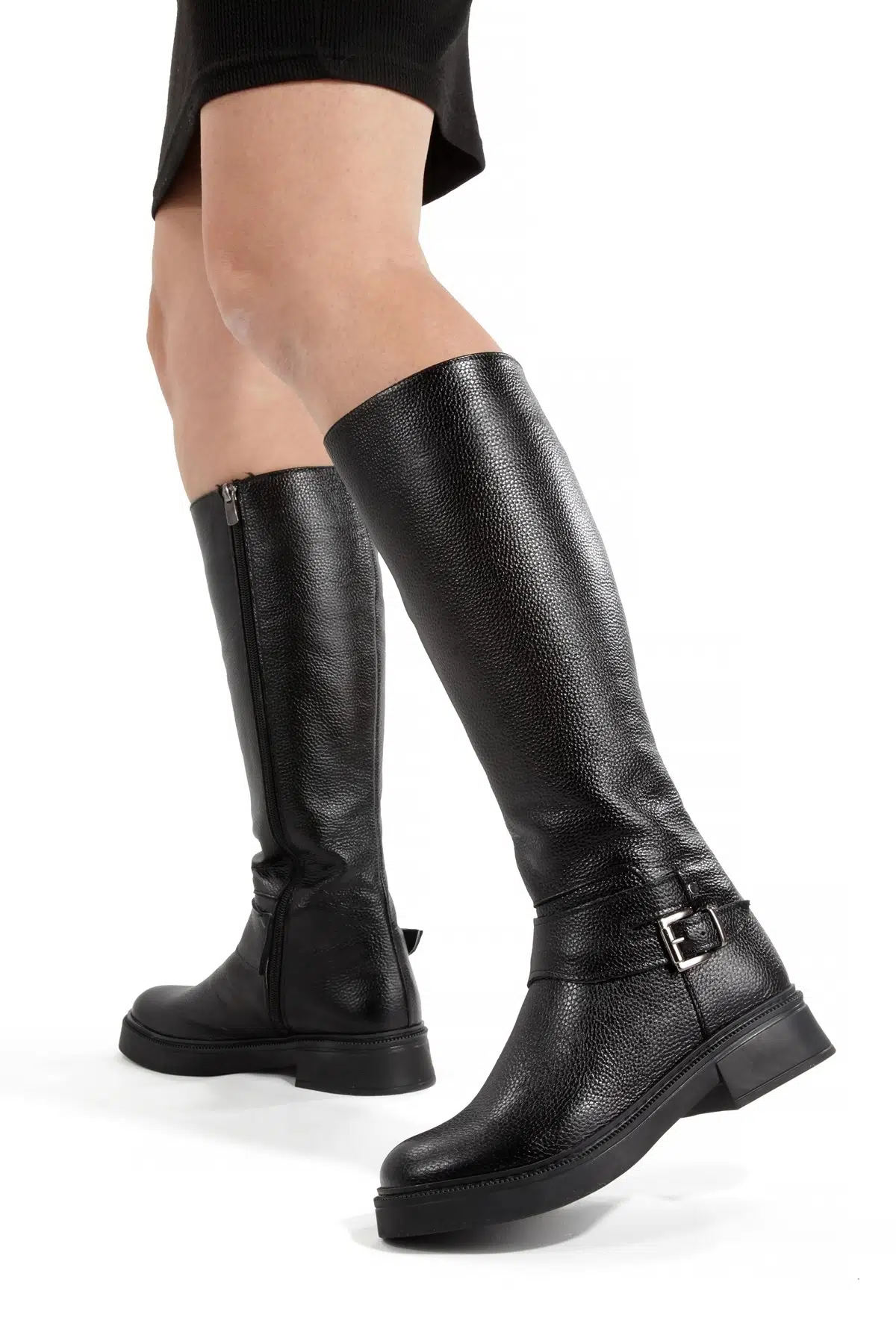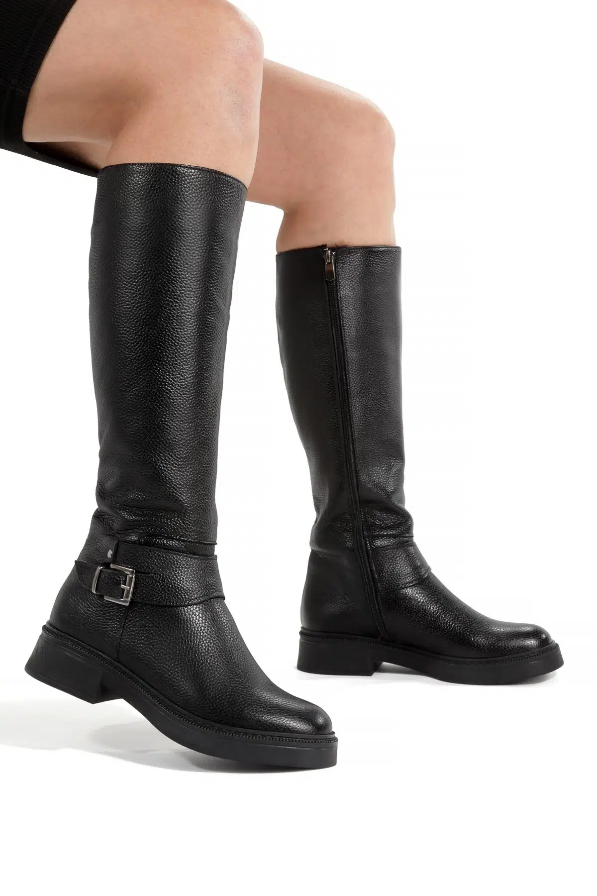 Wers Siyah Hakiki Deri Dizaltı Kısa Günlük Çizme
